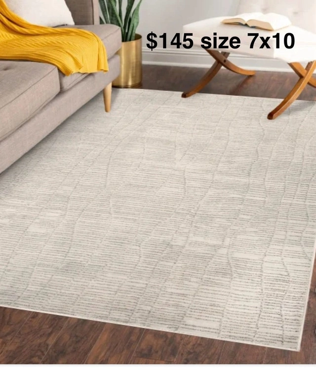 Add a touch of modern elegance to your home with this stylish 7x10 area rug! It features a contemporary pattern in neutral tones, perfect for any living room, bedroom, or dining area. New in condition Pickup from Ajax Specifications: * Size: 7 feet x 10 feet * Material: Synthetic fibers * Colour: Neutral tones * Style: Modern