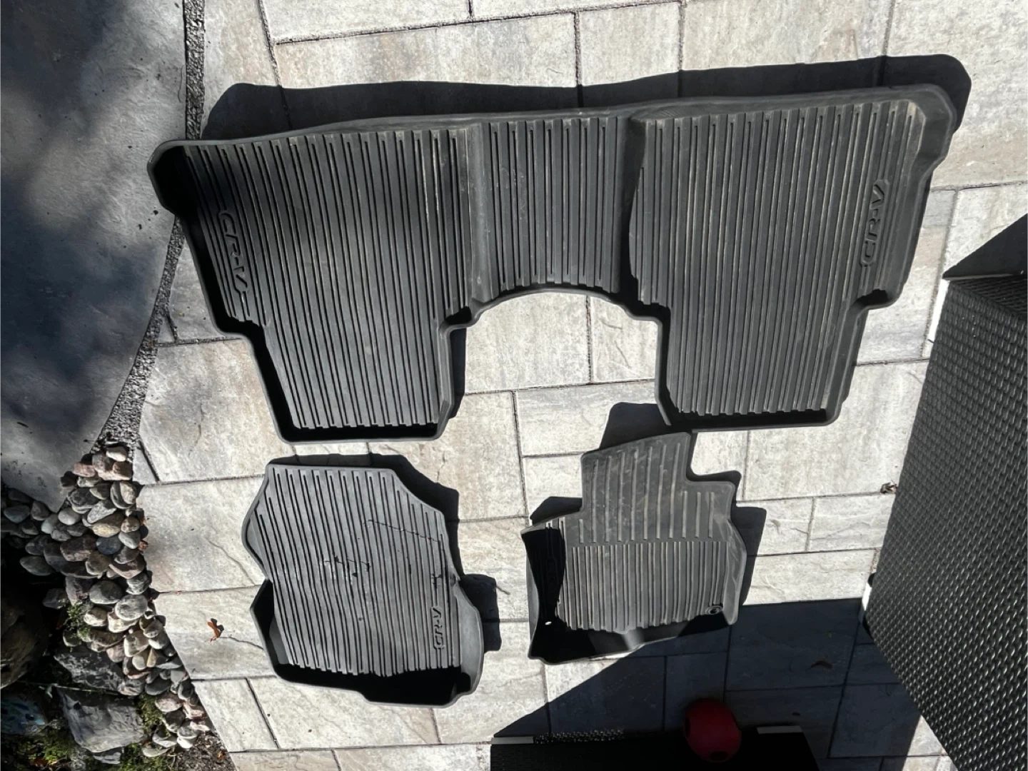 Selling a set of all-weather floor mats for a Honda CR-V. They're in great shape and ready to protect your car's interior from the elements! From a 2013, just needs a clean from storage.