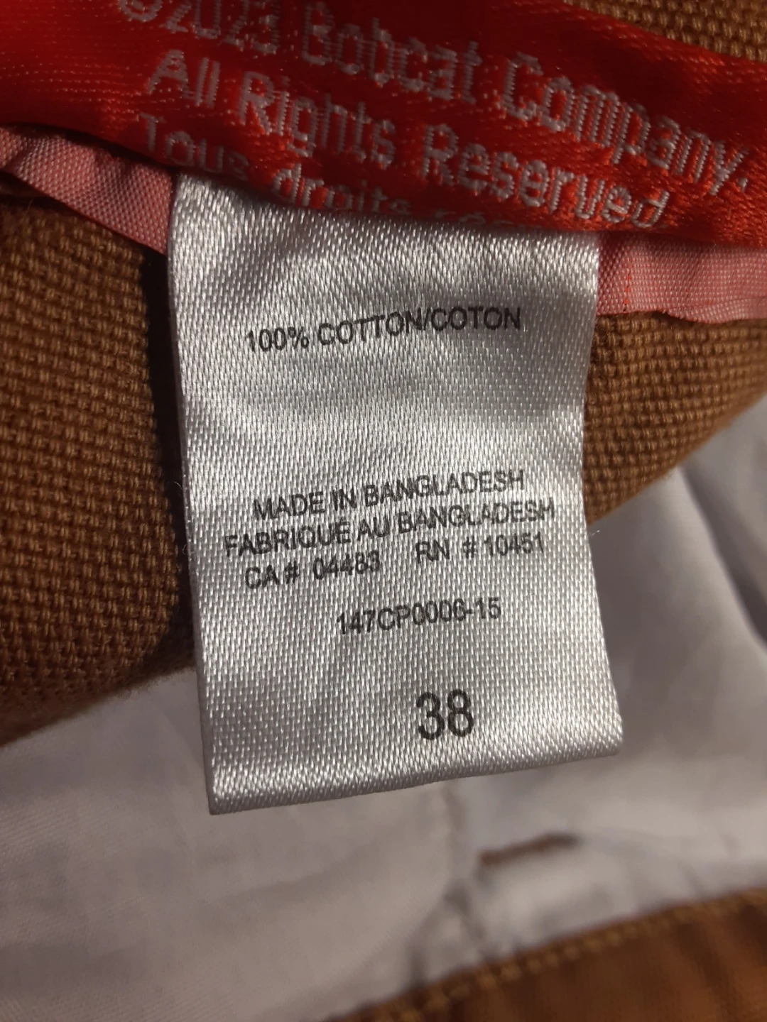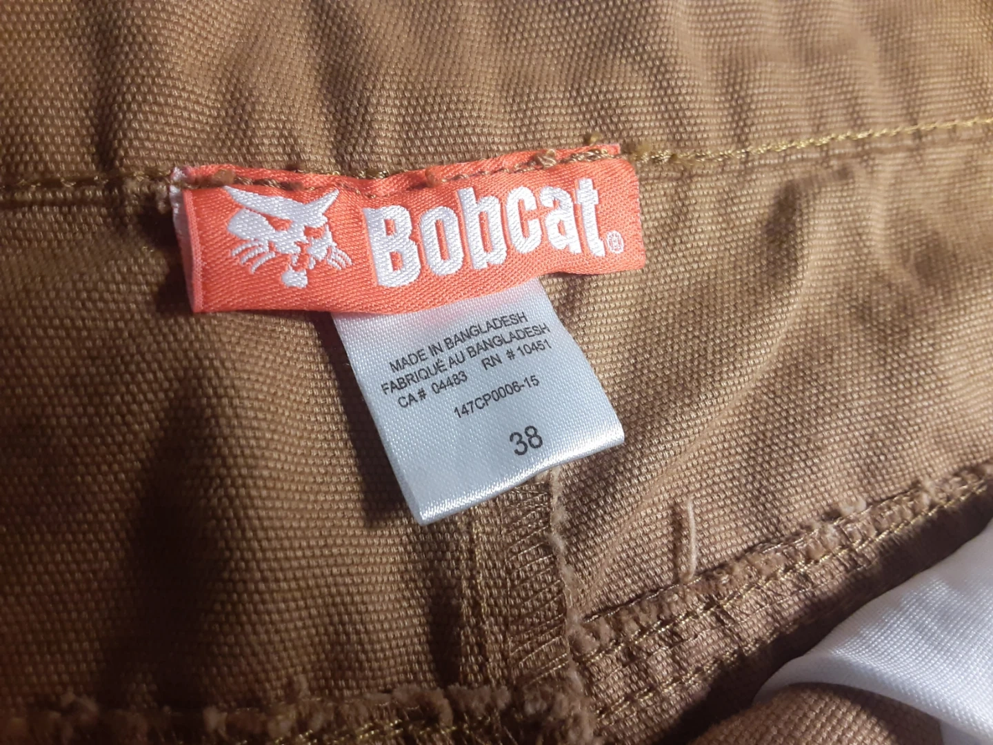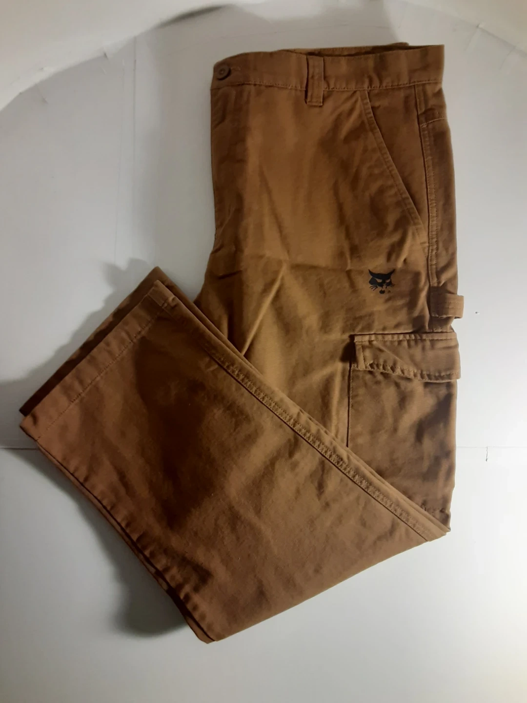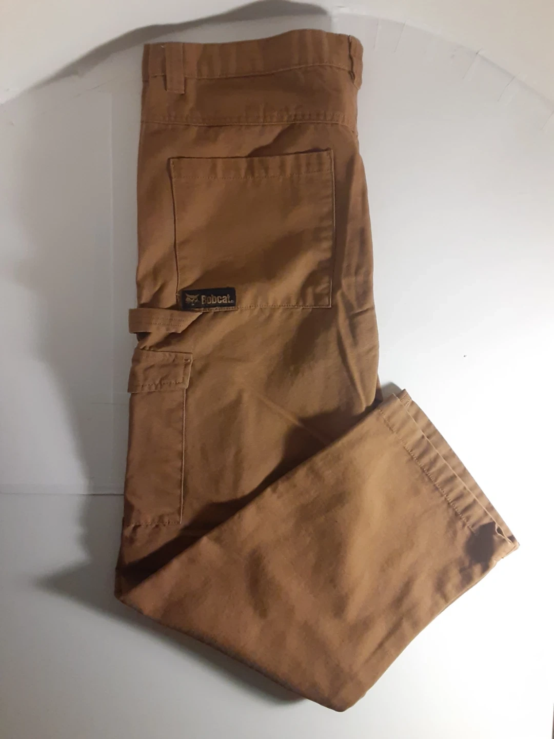Bobcat - 100% cotton, brown work pants in size 38(see images for measurements) in excellent condition. Multiple pockets (Front: 2 large regular pockets, 2 large velcro pockets. Back: 2 large regular pockets) and hammer loop.