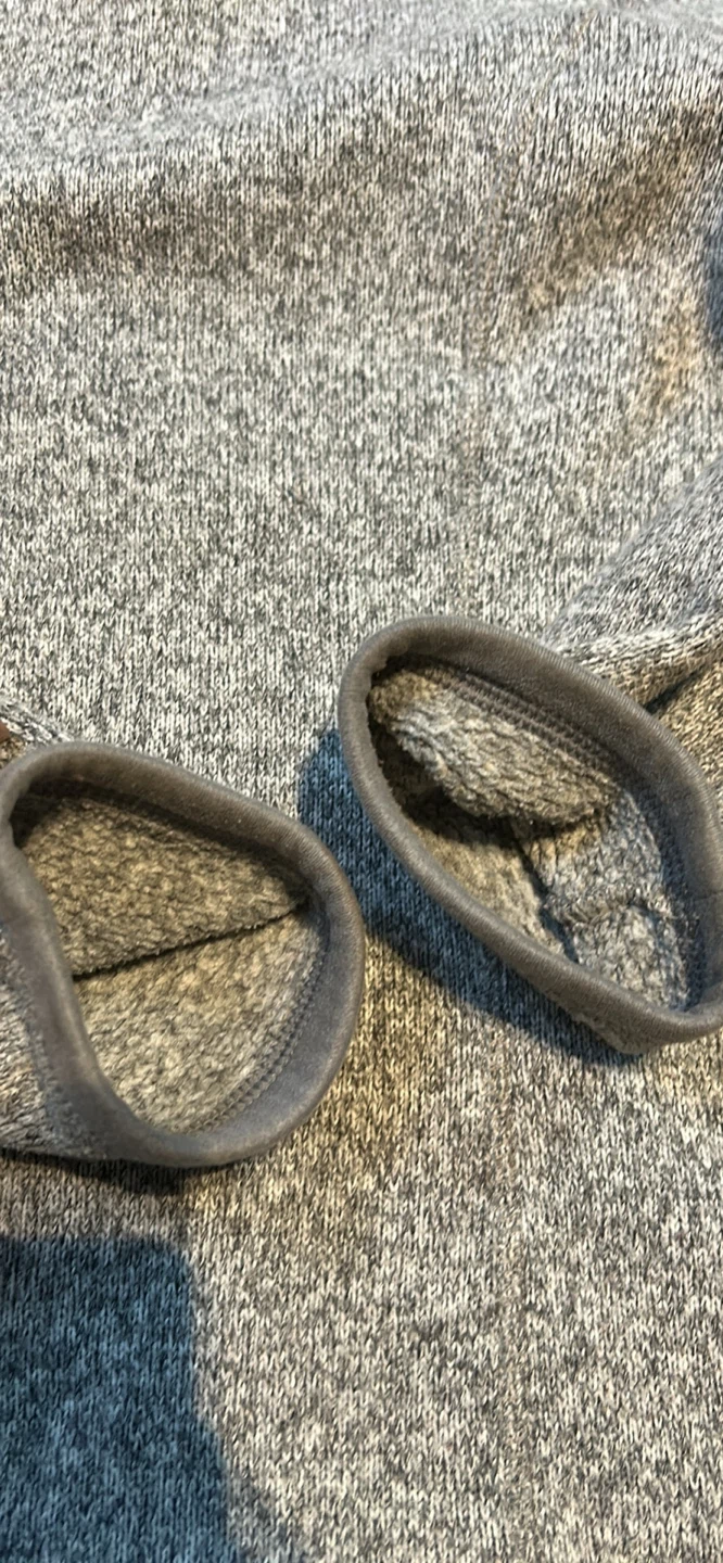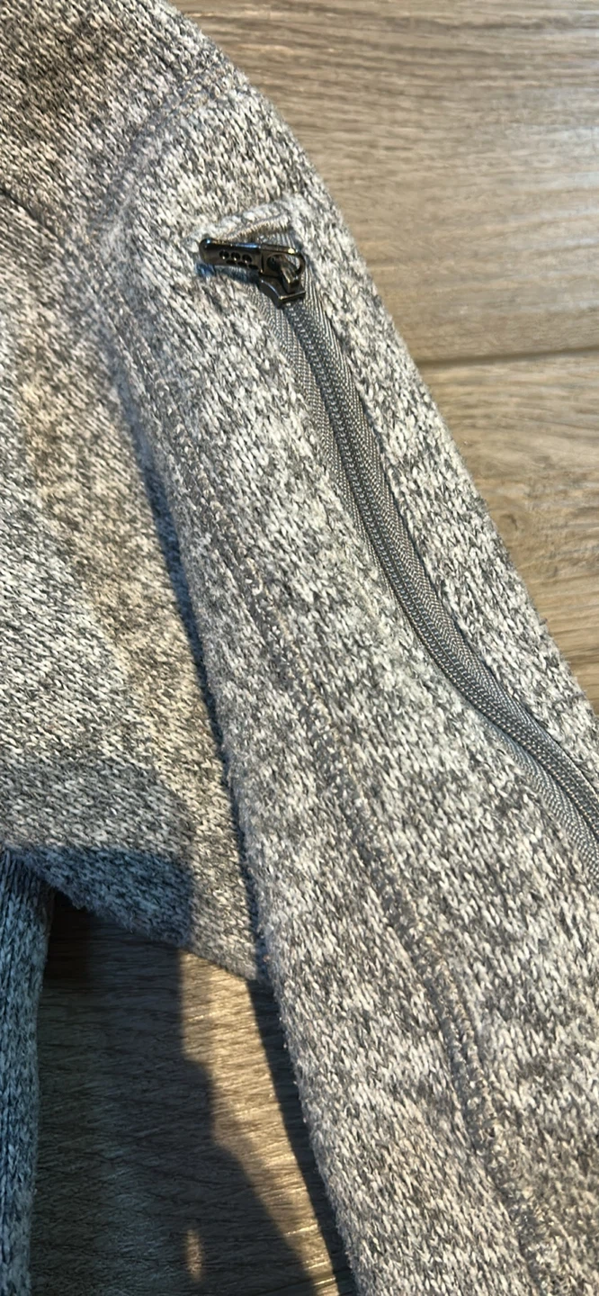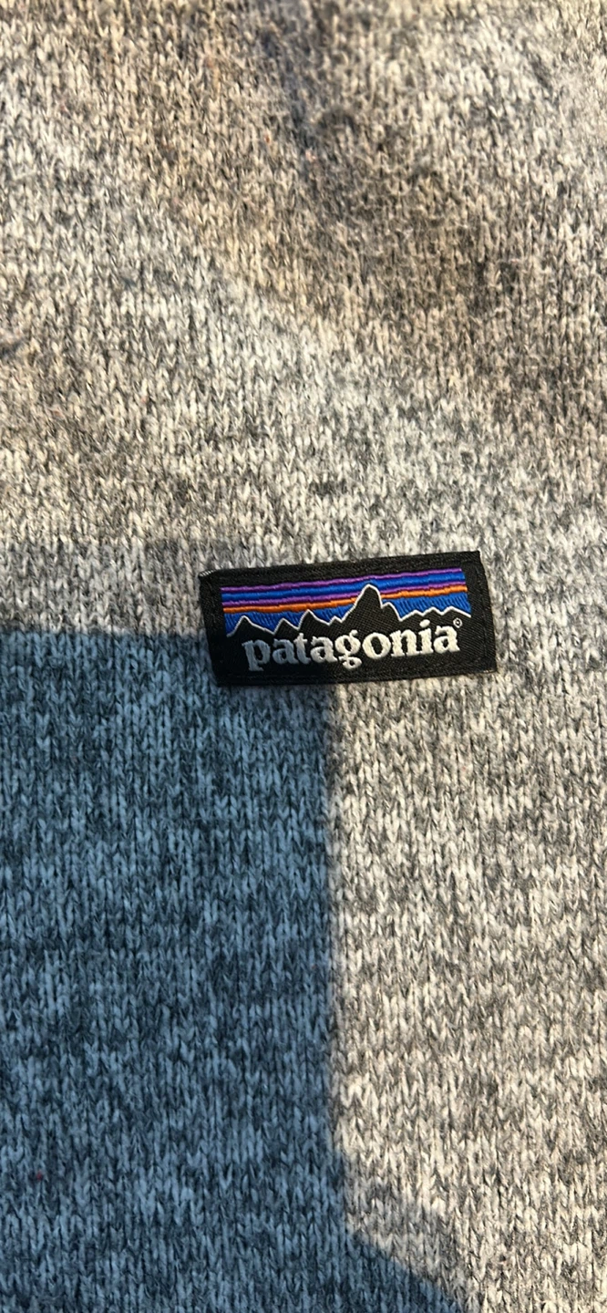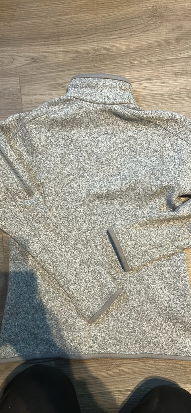 Cozy Patagonia Better Sweater 1/4 zip fleece in a neutral grey colour. It's perfect for layering on chilly days. There's some wear on the cuffs (see pics).