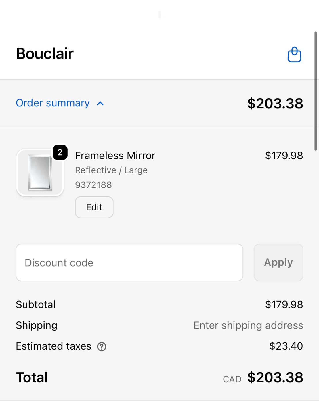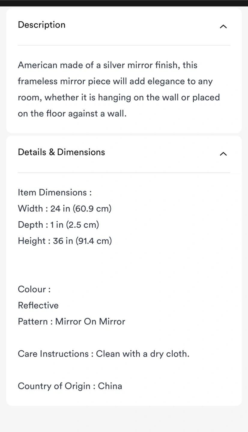 Bouclair Frameless Mirror 24x36