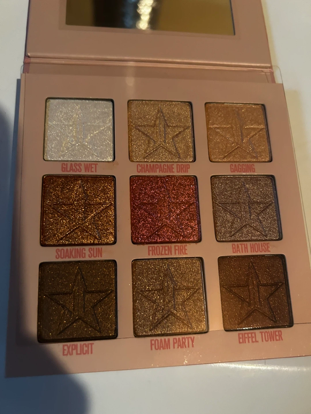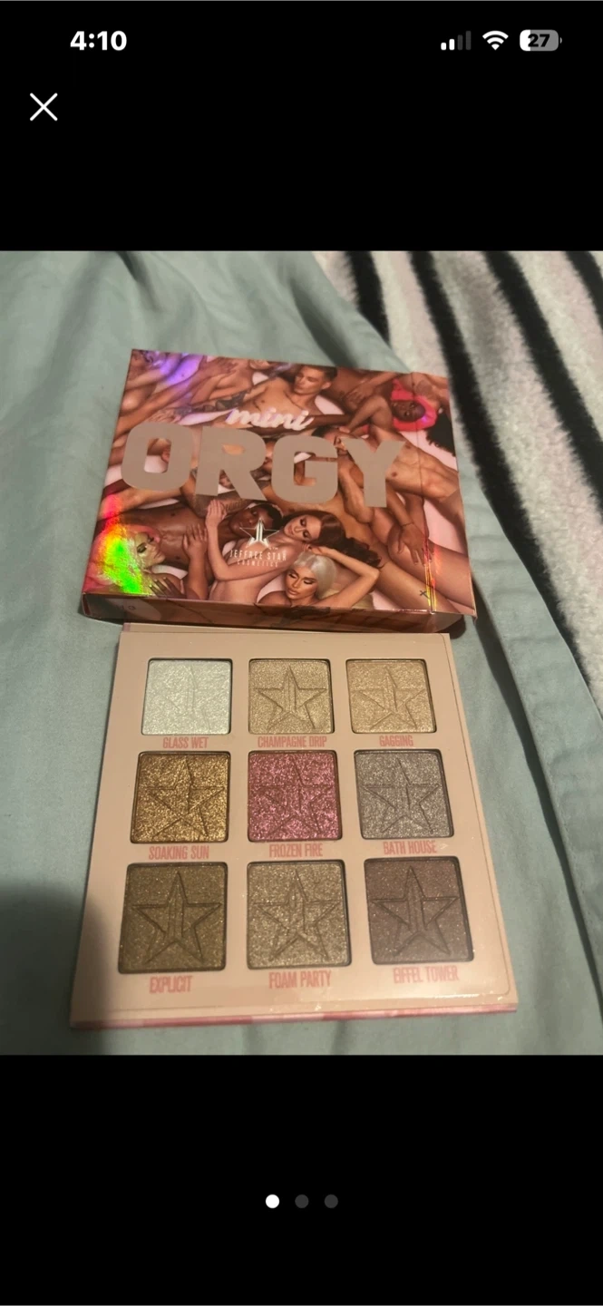 Selling a MEW Jeffree Star Cosmetics Mini Orgy eyeshadow palette. The palette features a range of neutral and metallic shades, perfect for creating a variety of eye looks. The shades are:
