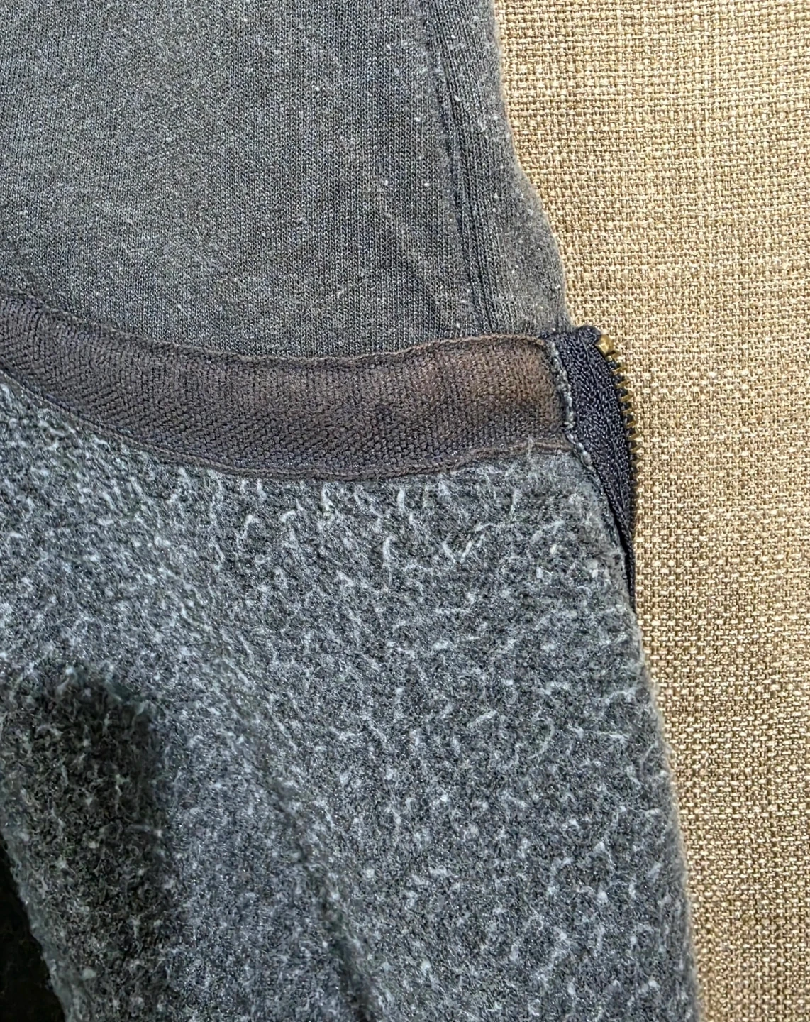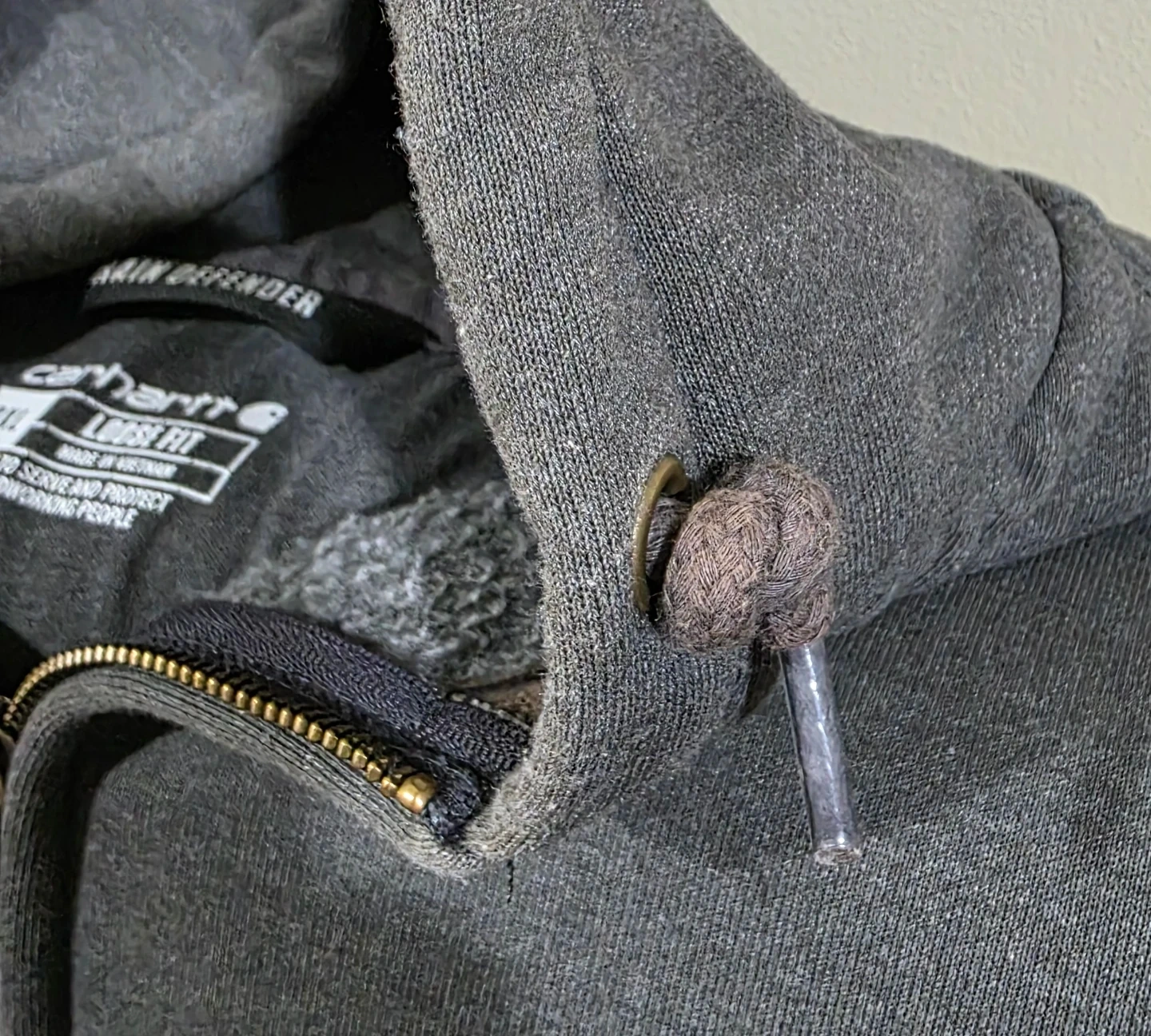 The only minor issue is that there is just a little bit of fading on the hoodie strings and on the seem on the bottom.