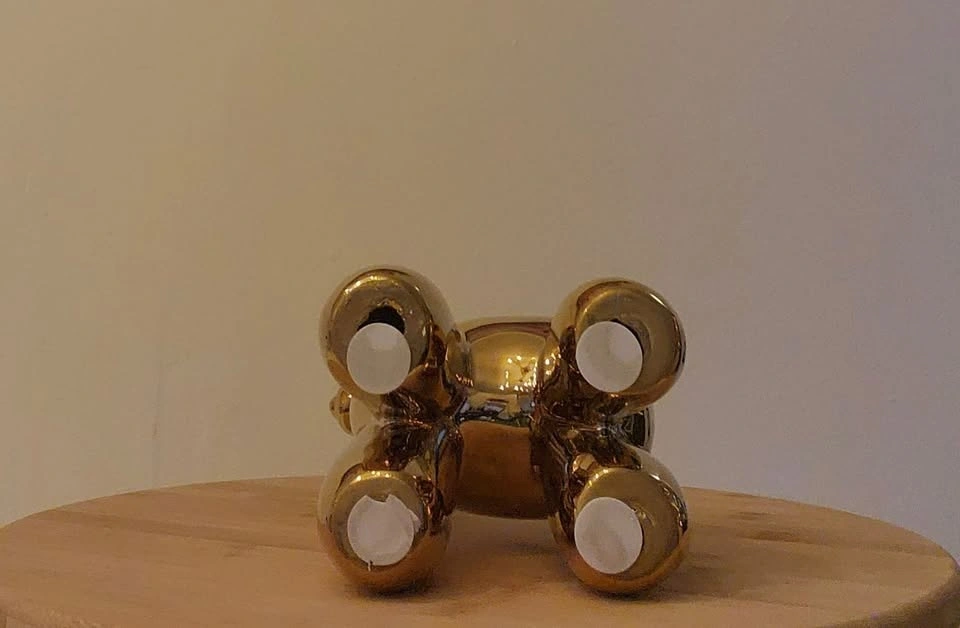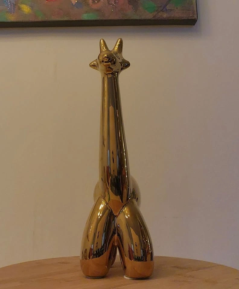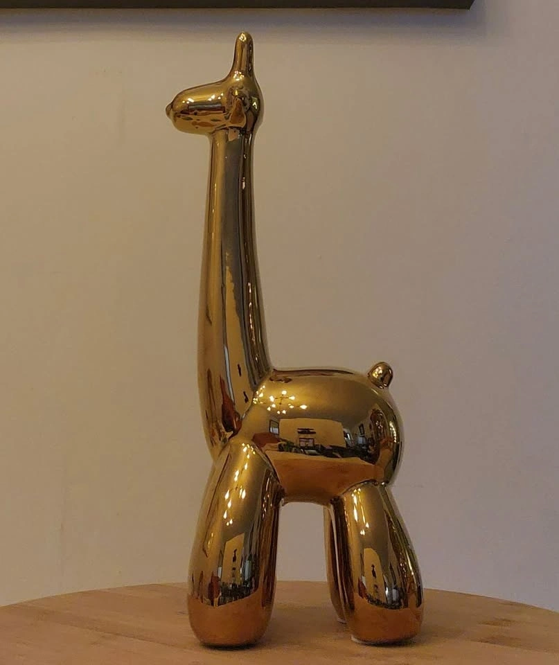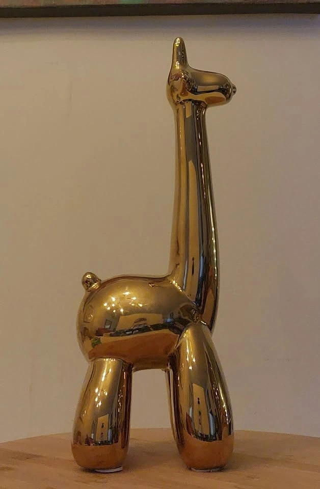 This bright and cheery giraffe is made to look like a balloon animal. It's fun and funky and will make a great decorator piece to bring a splash of bright color on your shelves.