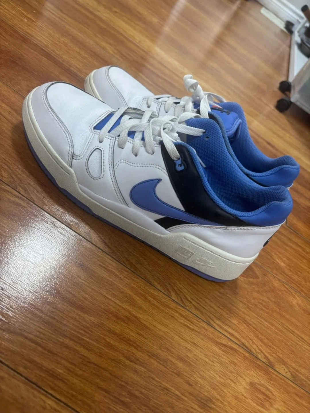 Selling a pair of Nike Force sneakers in US size 11! They feature a classic white and blue colourway. The manufacturing date on the tag is 2023 January 01.