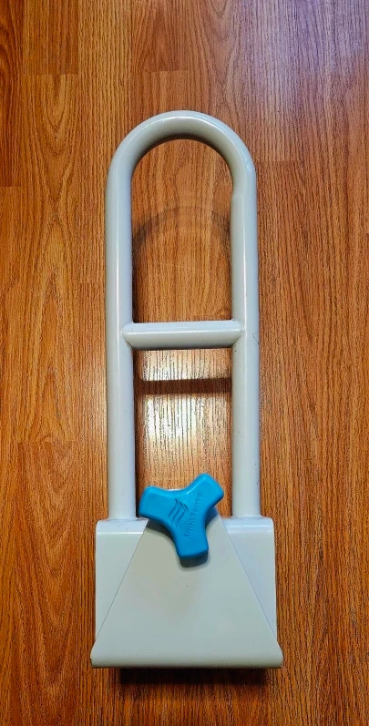 Selling a bathtub grab bar in great condition. It's adjustable and provides extra safety in the bathroom. The grab bar is white with a blue adjustment knob. Perfect for anyone who needs a little extra support getting in and out of the tub!