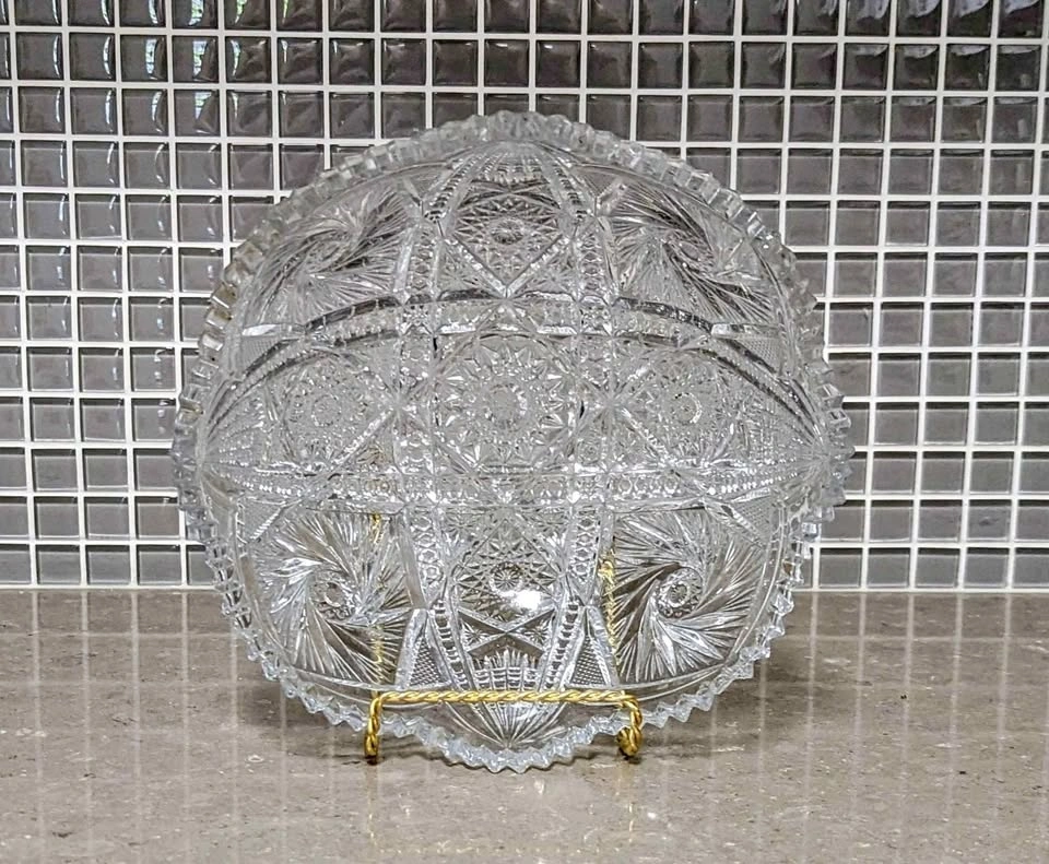 Antique American Brilliant Cut Glass Bowl, ABP Crystal, 8"