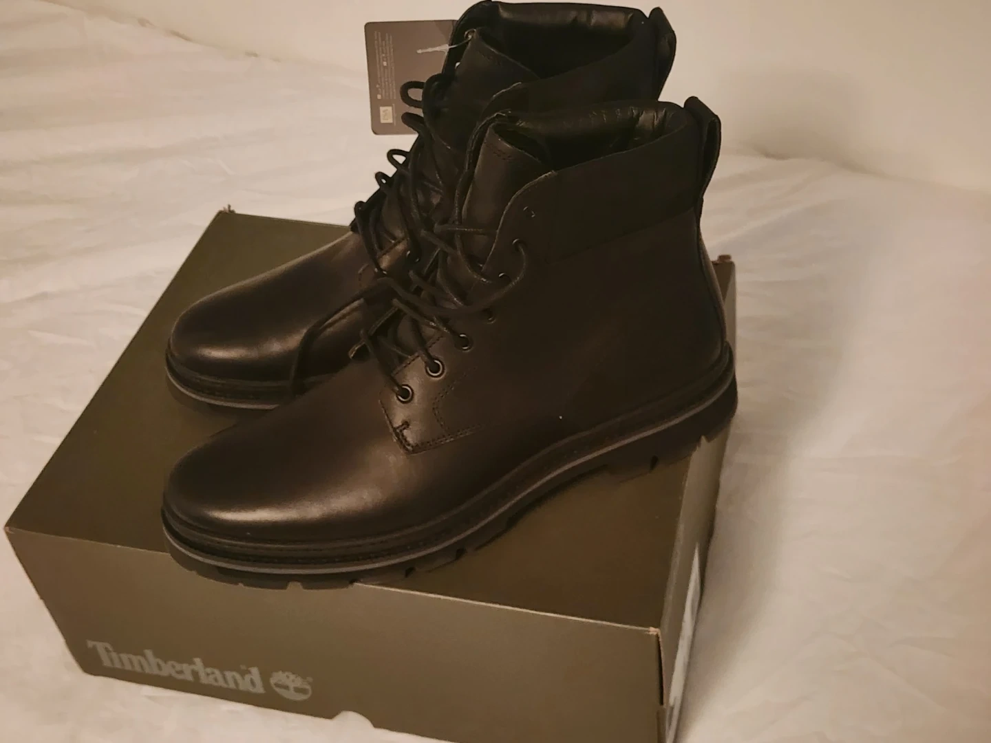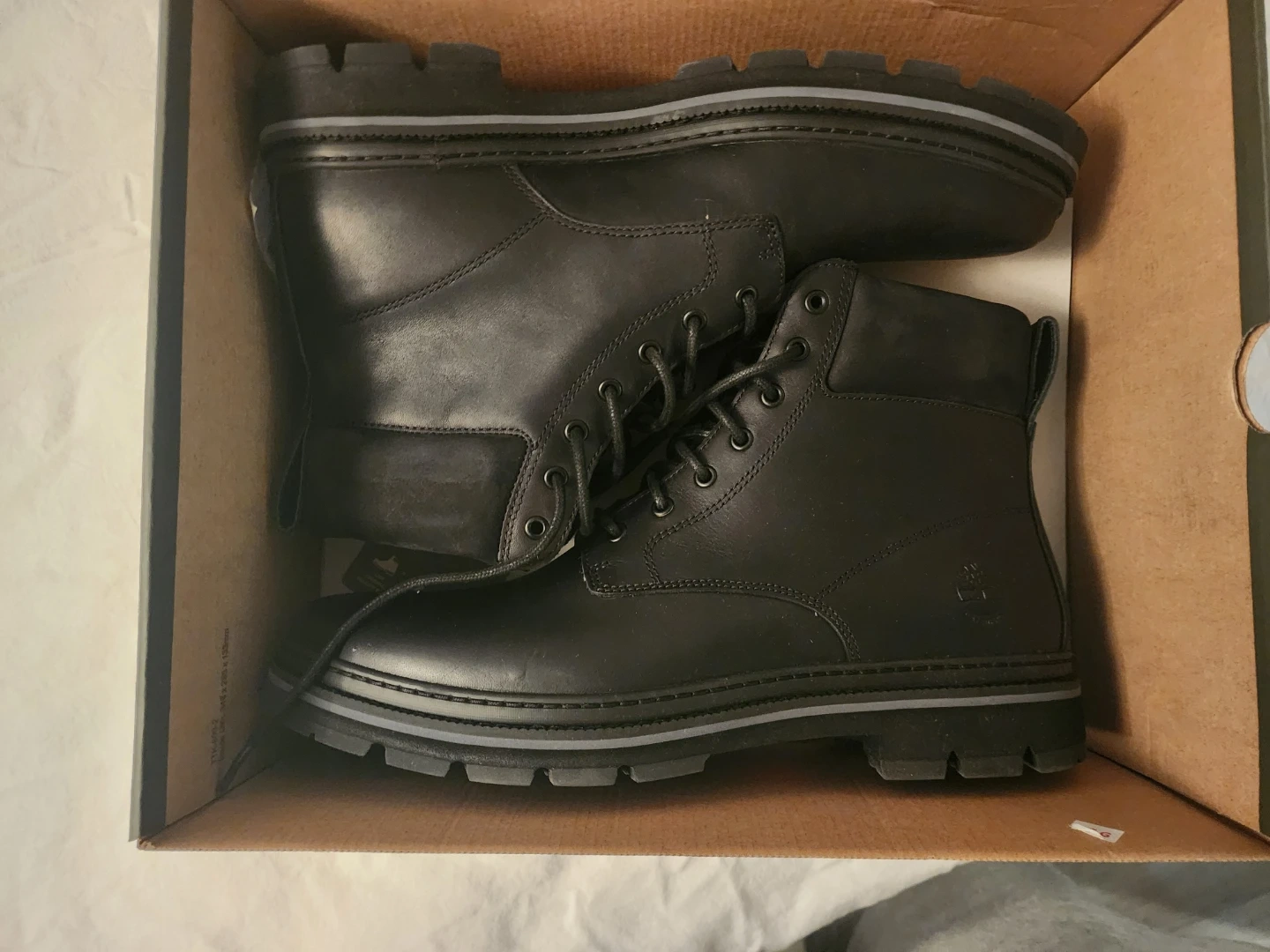 Selling a brand new pair of Timberland Port Union waterproof boots in black full grain leather. They are a size 10.5 M/M. The box is included!