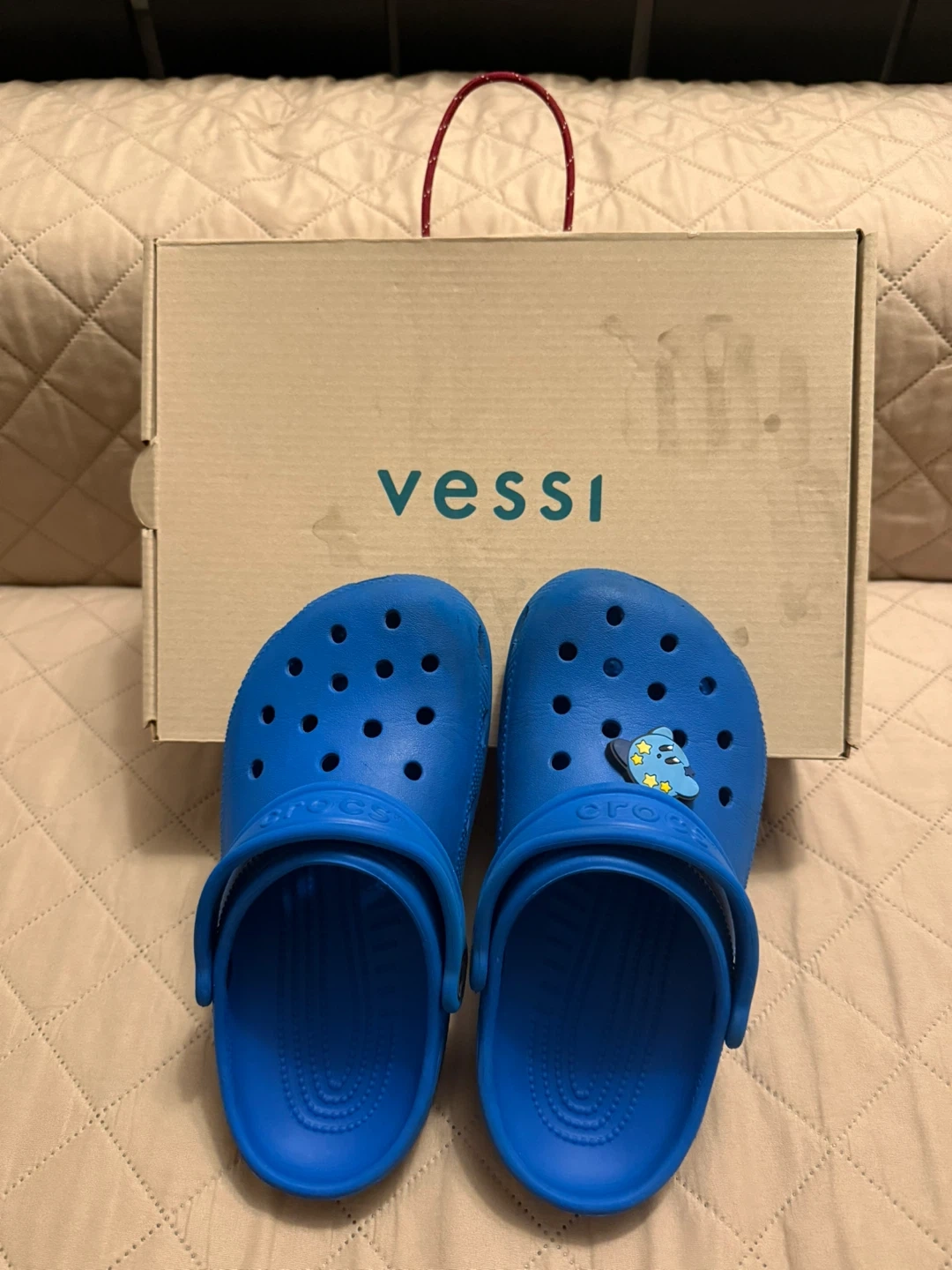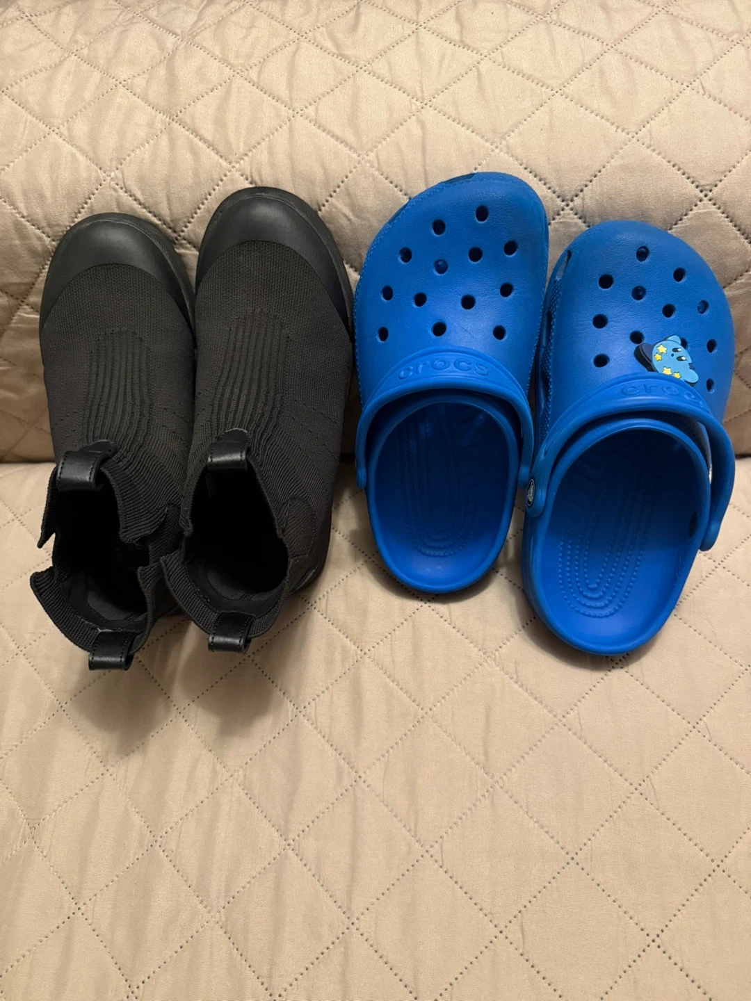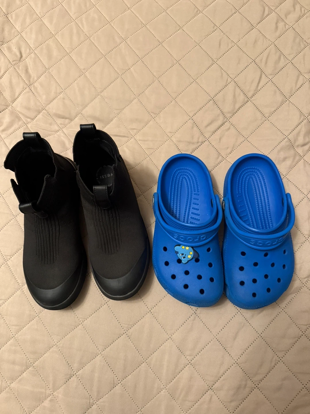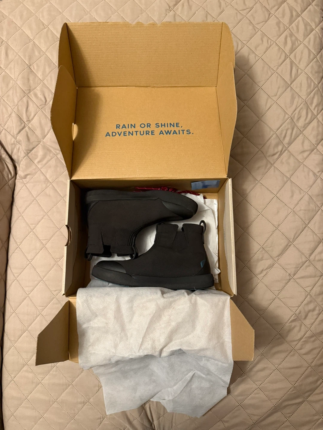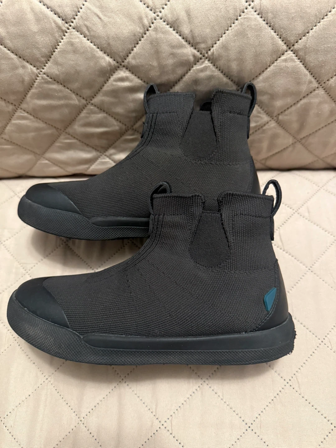 Selling a pair of Vessi Weekend Chelsea Sneakers in black! They're in great condition and come with the original box. These boots are lightweight and perfect for everyday wear. They are also waterproof! Throwing in a pair of Crocs for 2 for 1 deal!