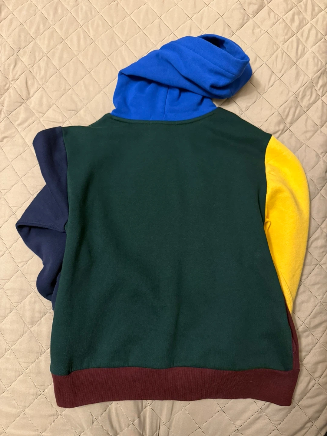 Selling a size M (10-12) Polo Ralph Lauren hoodie with the Polo Bear design in a fun colour block pattern! It's in great shape and ready for a new owner. The colours are really vibrant and the bear is super cute!