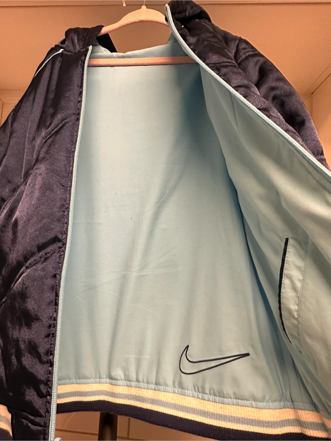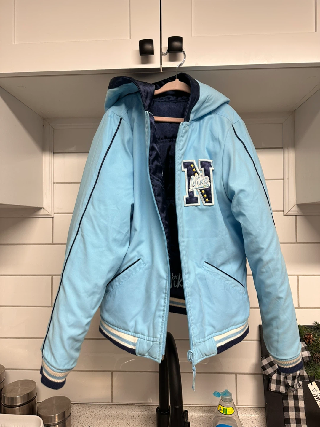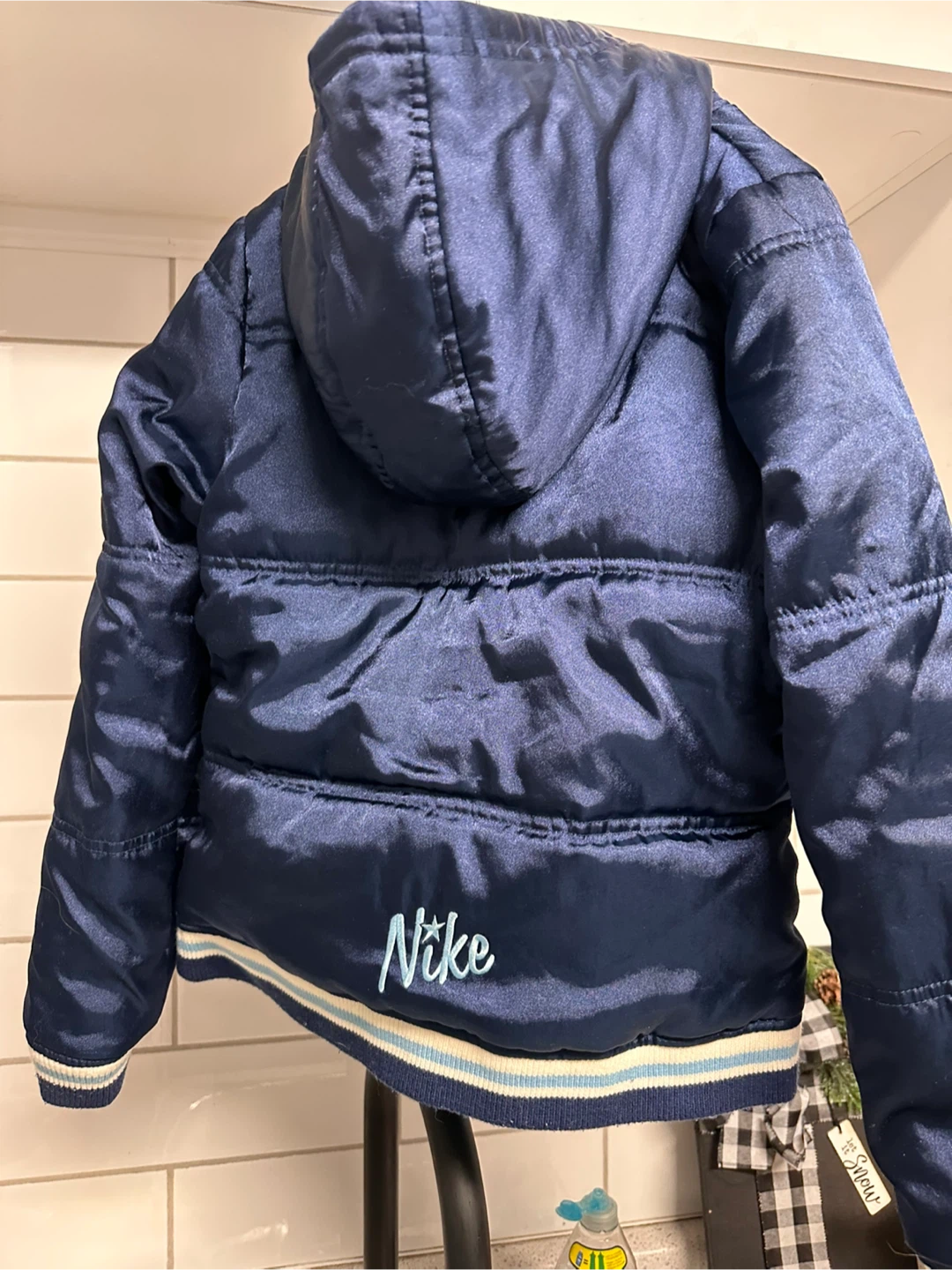 Check out this stylish Nike reversible puffer jacket! It's in great condition and features a cool design with the Nike logo on both sides. Perfect for keeping your little one warm and looking good!