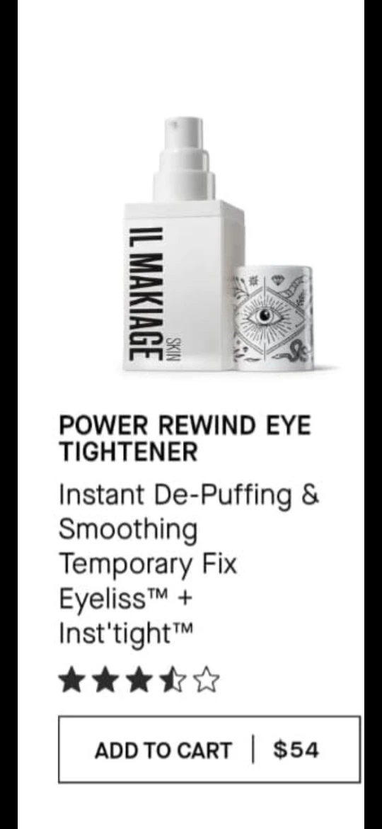 Selling an IL MAKIAGE Power Rewind Eye Tightener. This is for instant de-puffing and smoothing. It is a temporary fix with Eyeliss™ + Inst'tight™. Originally bought for $54