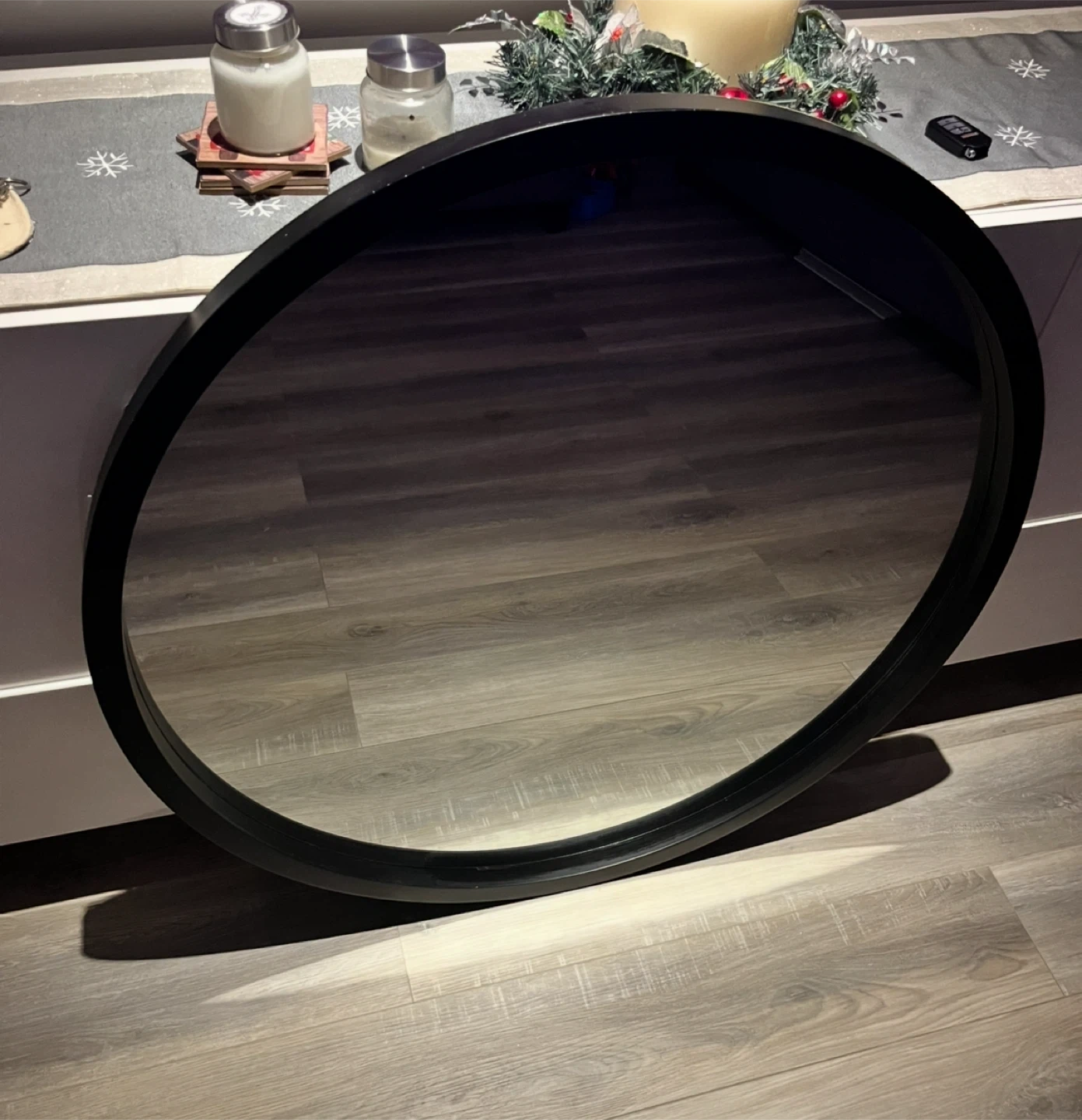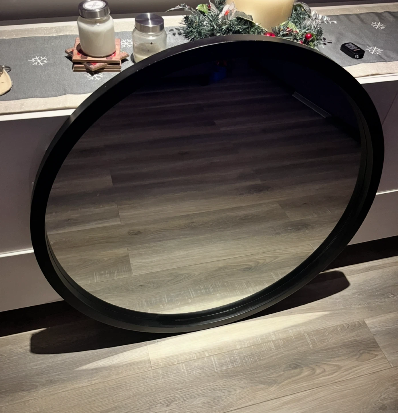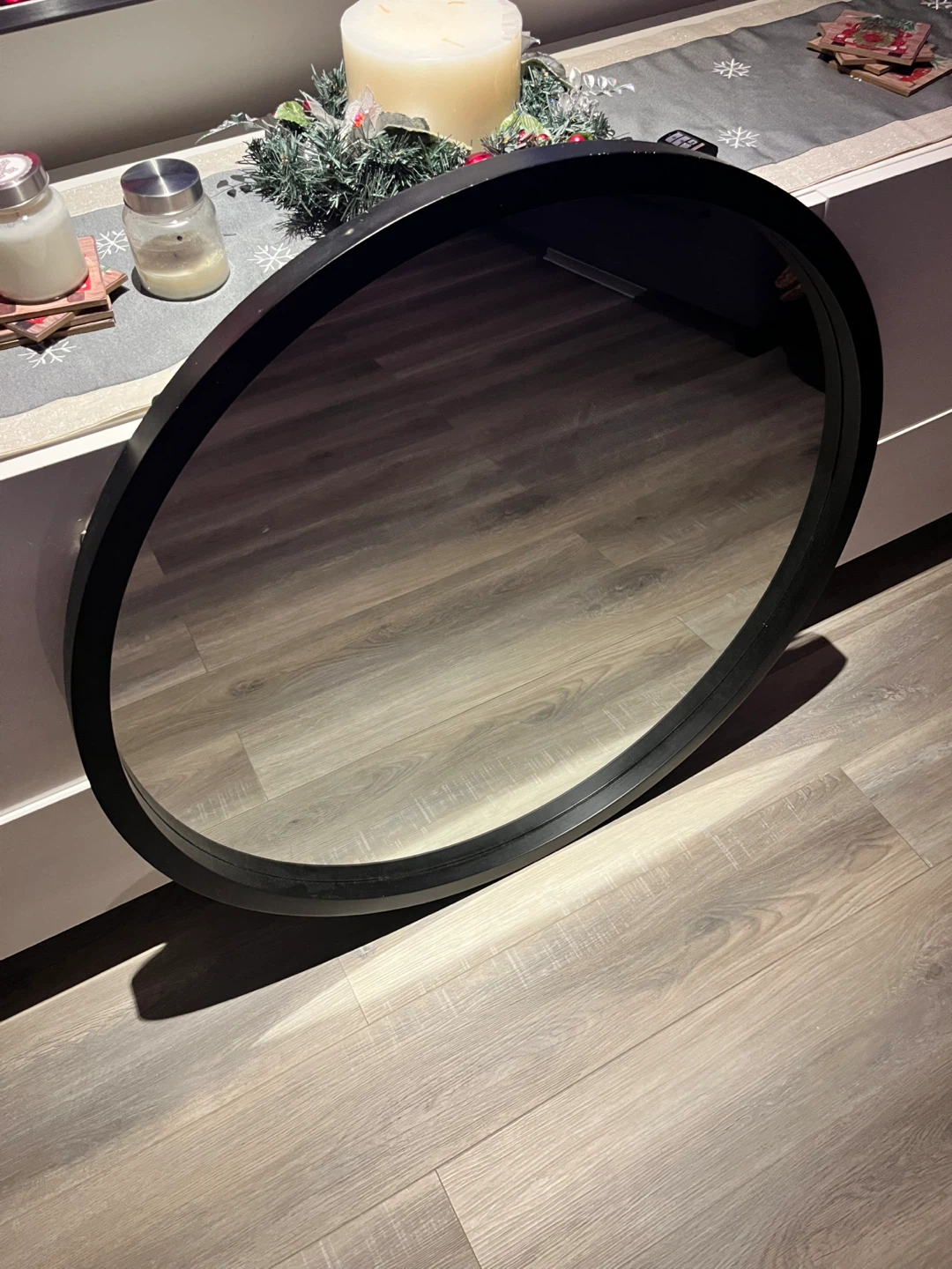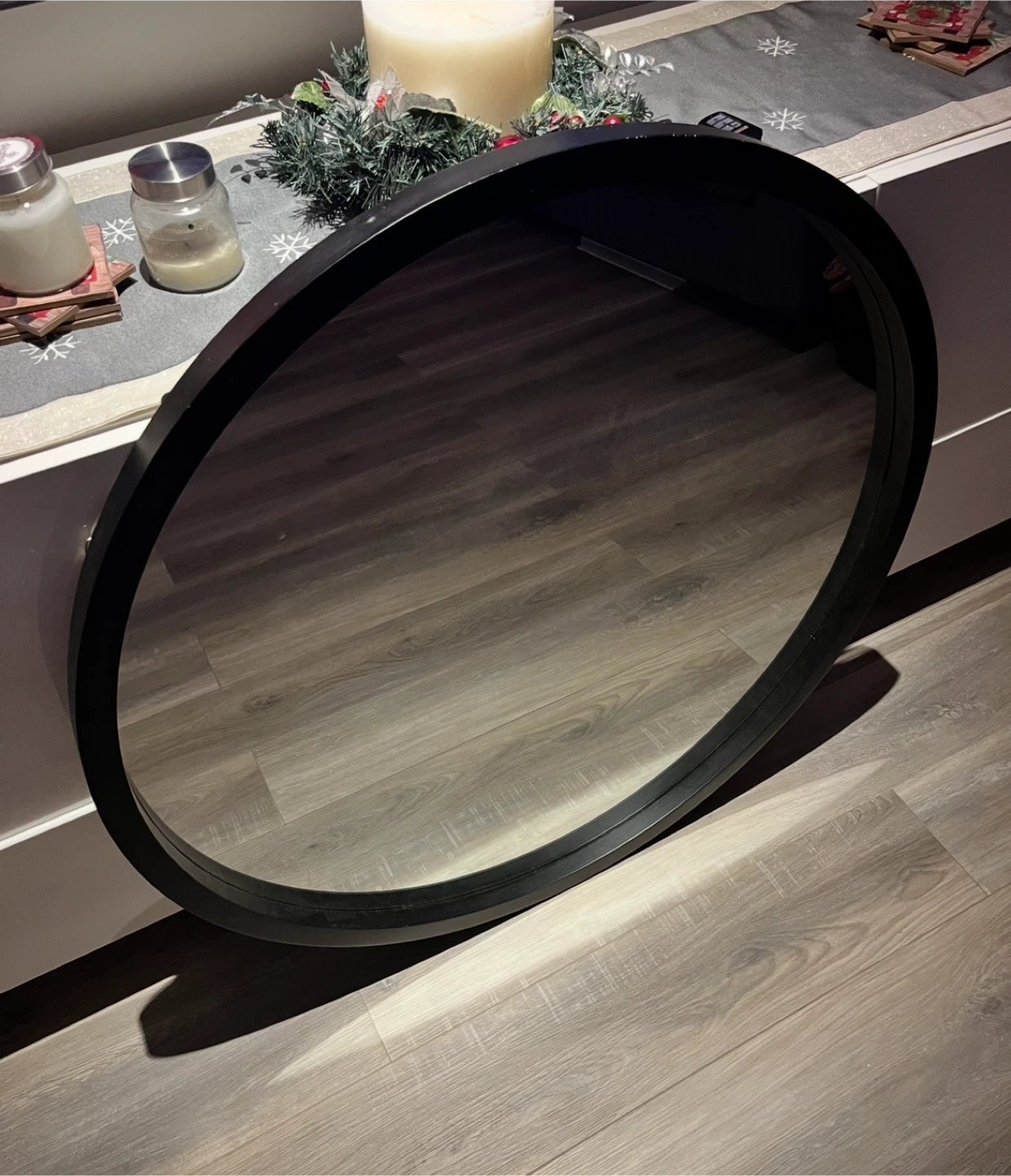 Selling a round mirror with a black frame! It's in great condition and would look lovely in any room. The simple design makes it versatile and easy to match with your existing decor. It’s ready to add a touch of elegance to your space.