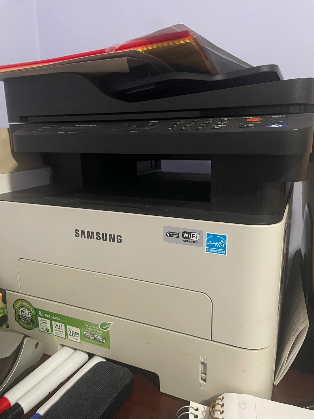 Selling a Samsung Xpress Mono printer. It has Wi-Fi certification and is Energy Star rated. It also has toner-saving features.