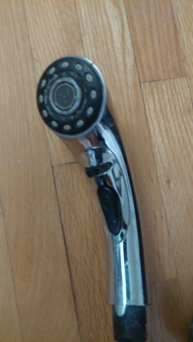 - Chrome kitchen faucet with a pull-down sprayer. It shows some signs of wear as pictured but was in working condition before we replaced this with a different model. Selling as-is condition.