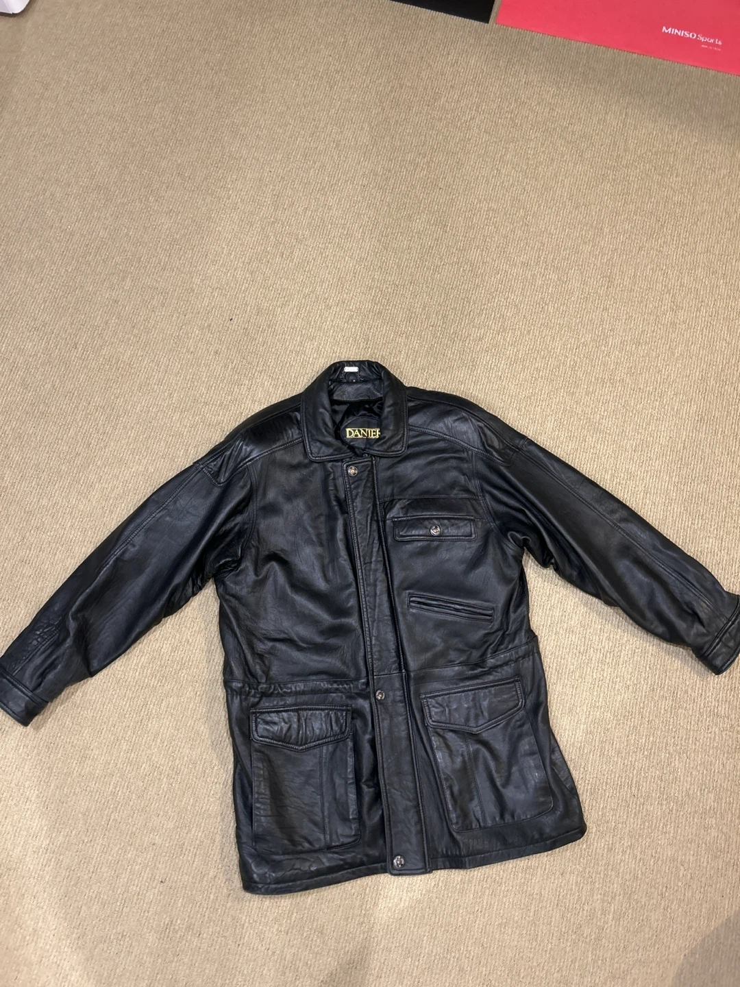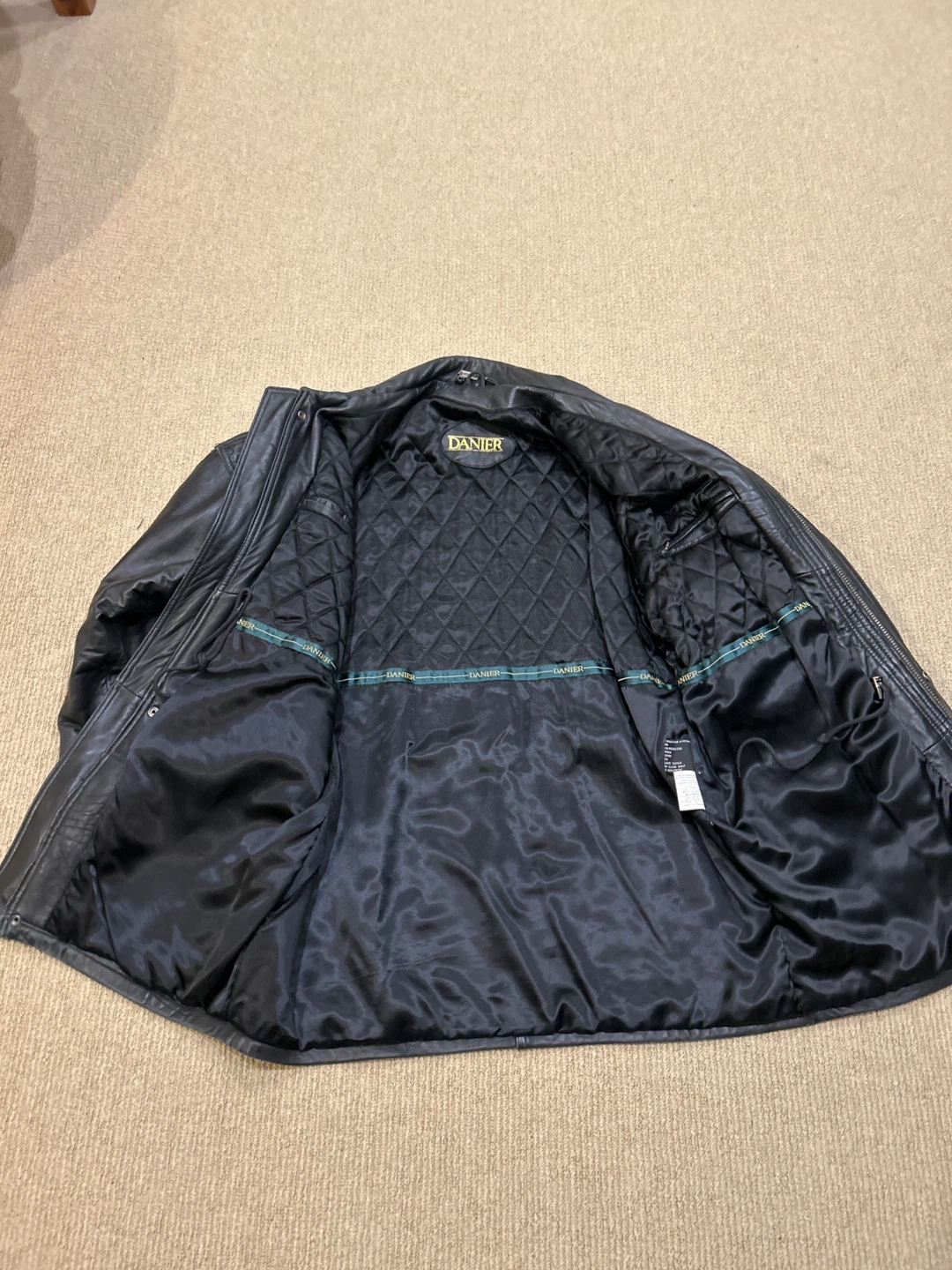 Here's a stylish black leather jacket from DANIER. It's in great condition and is fully lined and warm. Very gently worn.