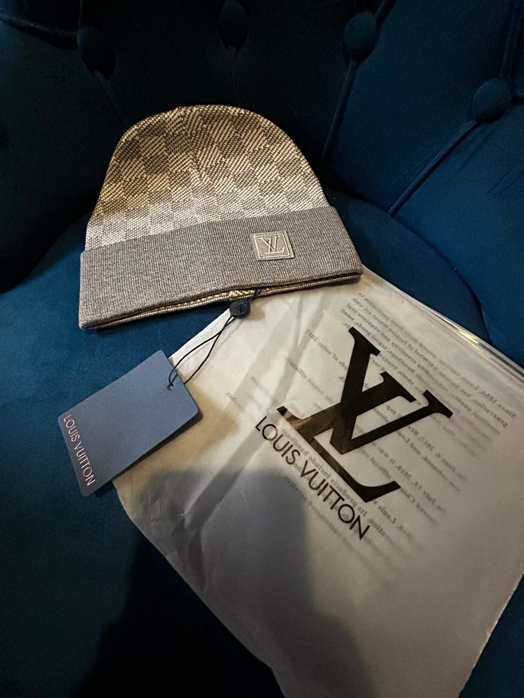 Selling a Louis Vuitton beanie. It's in excellent condition and comes with the original tag and dust bag!