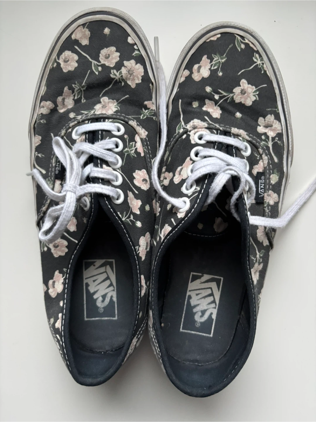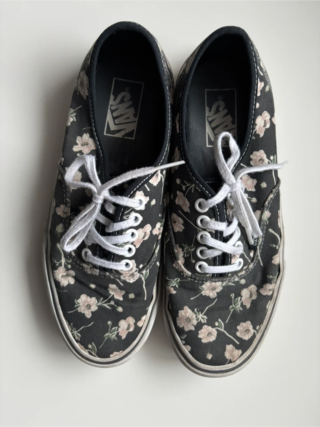 Selling a pair of Vans sneakers with a cute floral pattern! They are a women's size 8.5. They show some signs of wear, as you can see in the photos.