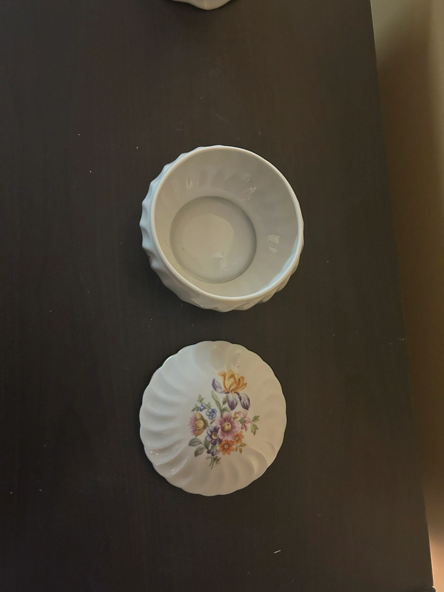Buy & SellVintage Floral Trinket BoxVintage Floral Trinket Box$10Small porcelain trinket box. White with floral design. Lidded. Perfect for jewelry or other small items.WHERE TO MEETCheck LocationView MapSELLERverifiedRebecca WOceanside650 reviews0 chats·0 favorites·0 views