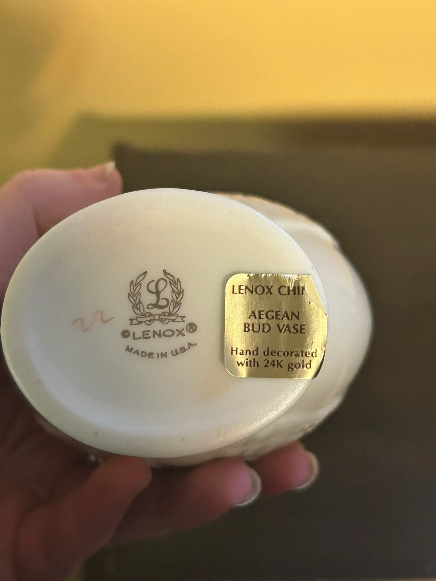 Buy & SellLenox Aegean Bud Vase, 24k Gold AccentsLenox Aegean Bud Vase, 24k Gold Accents$8Elegant Lenox bud vase. Features a cream color with embossed design and 24k gold accents. Perfect for flowers or display.WHERE TO MEETCheck LocationView MapSELLERverifiedRebecca WOceanside650 reviews0 chats·0 favorites·0 views