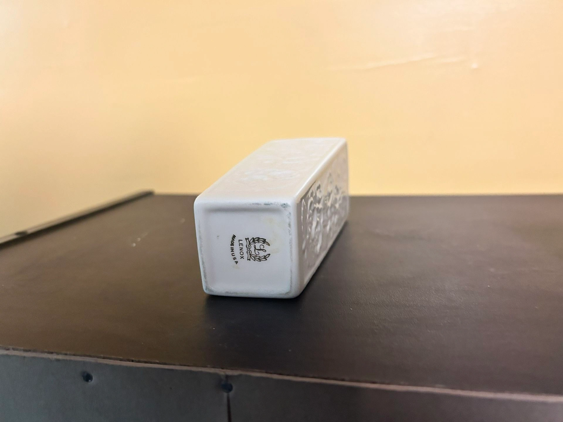 Buy & SellLenox White Rectangular Bud Vase with Floral DesignLenox White Rectangular Bud Vase with Floral Design$6Small, elegant white porcelain bud vase. Rectangular shape. Floral embossing. Gold accent on rim. Made in USA.WHERE TO MEETCheck LocationView MapSELLERverifiedRebecca WOceanside650 reviews1 chats·0 favorites·6 viewsSEND CHAT TO SELLERHi Rebecca W! I’m interested in your listing.Hi Rebecca W! I’m interested in your listing.Get the Karrot app to chatSign In to chat