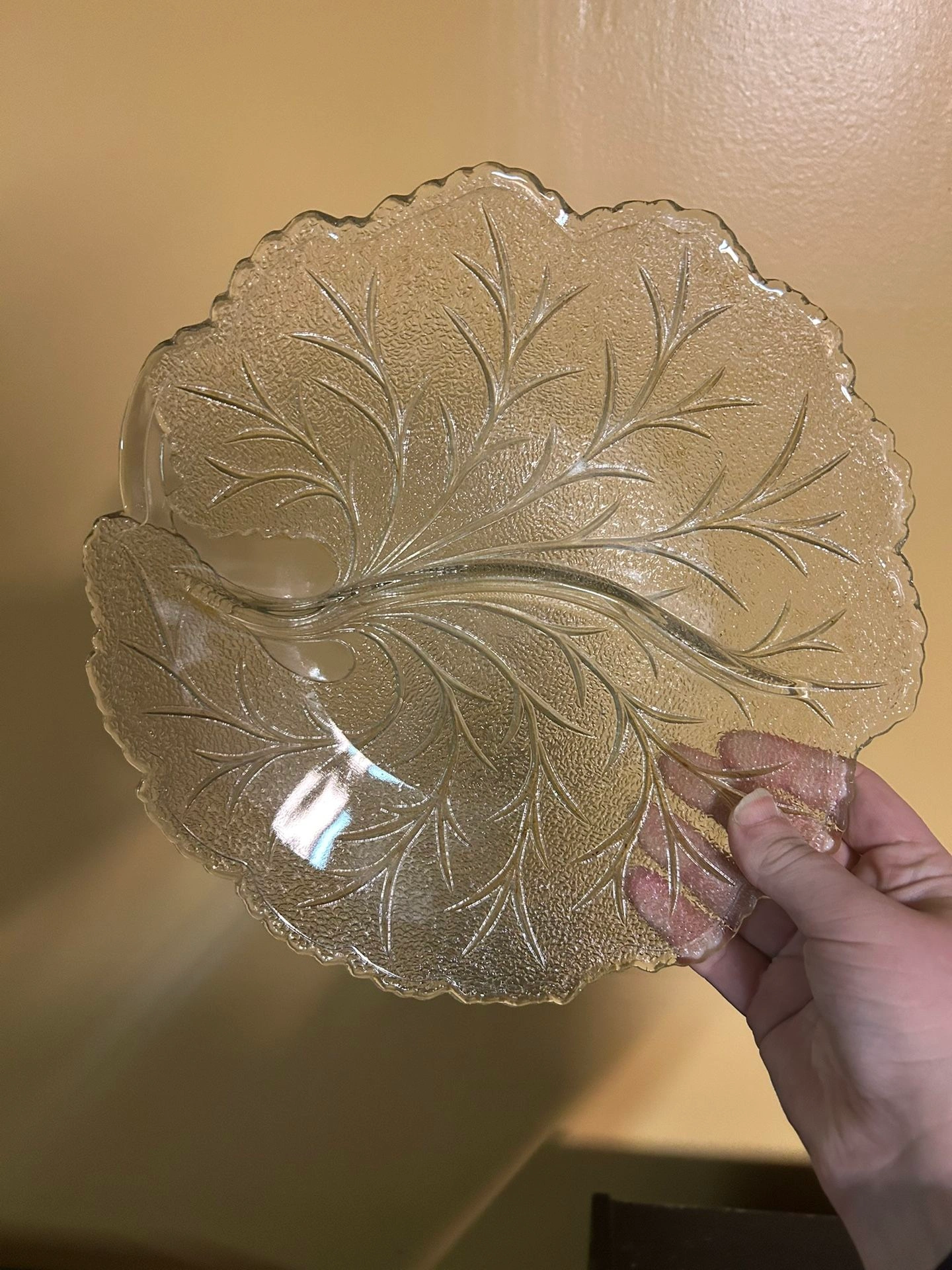 Buy & SellVintage Glass Leaf Shaped Divided Serving DishVintage Glass Leaf Shaped Divided Serving Dish$11Unique divided serving dish. Leaf design. Clear glass. Perfect for snacks or appetizers.WHERE TO MEETCheck LocationView MapSELLERverifiedRebecca WOceanside650 reviews0 chats·0 favorites·5 viewsSEND CHAT TO SELLERHi Rebecca W! I’m interested in your listing.Hi Rebecca W! I’m interested in your listing.Get the Karrot app to chatSign In to chat