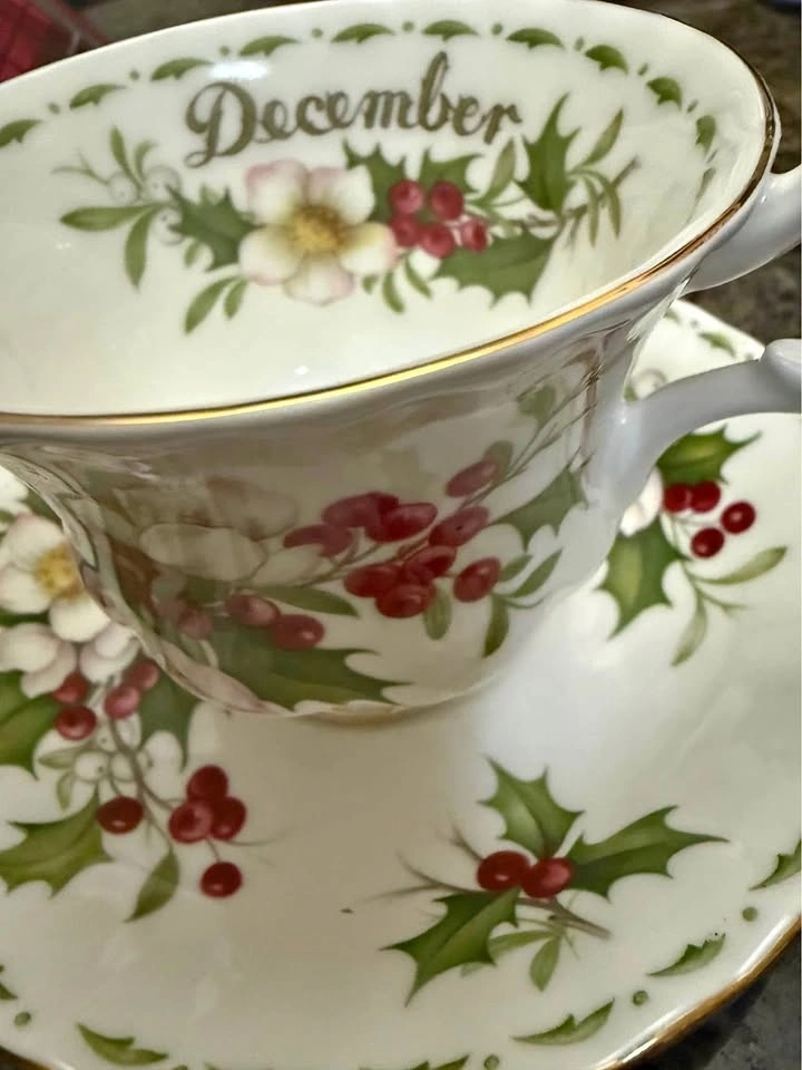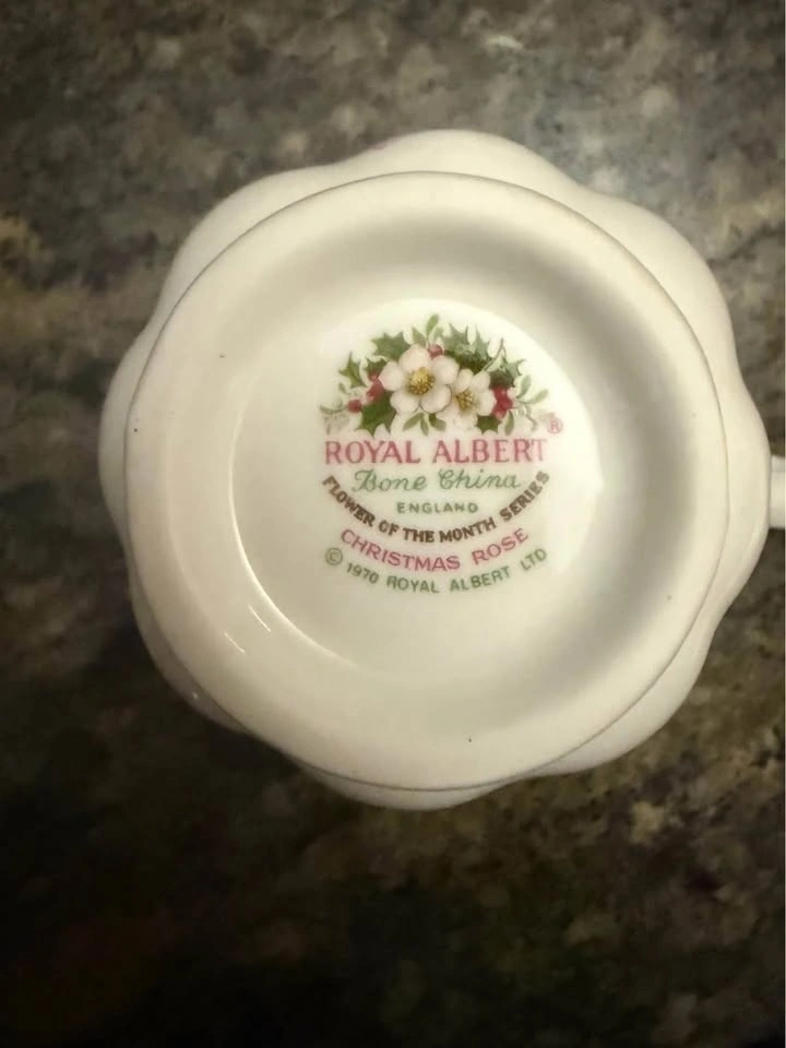 Rare collectible Royal Albert bone china vintage NEW Christmas Rose cup & saucer from the Flower of the Month Series (1970 England).