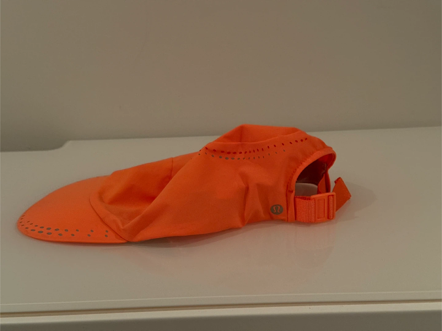 This Lululemon running hat is perfect for your next run! It's a vibrant orange colour and size L/XL.