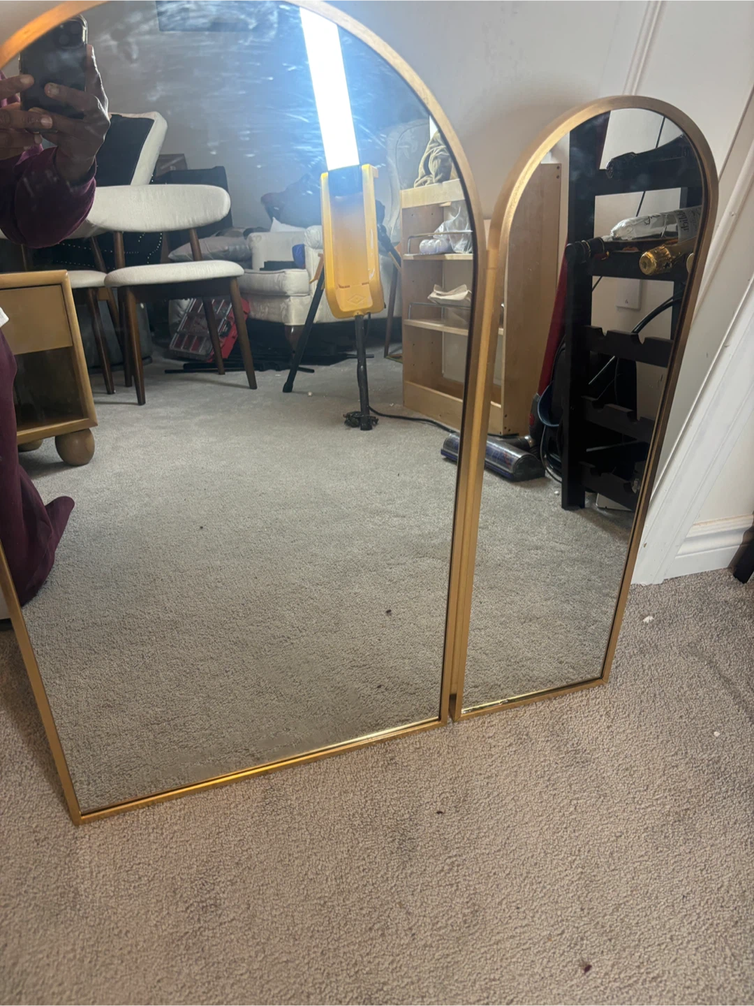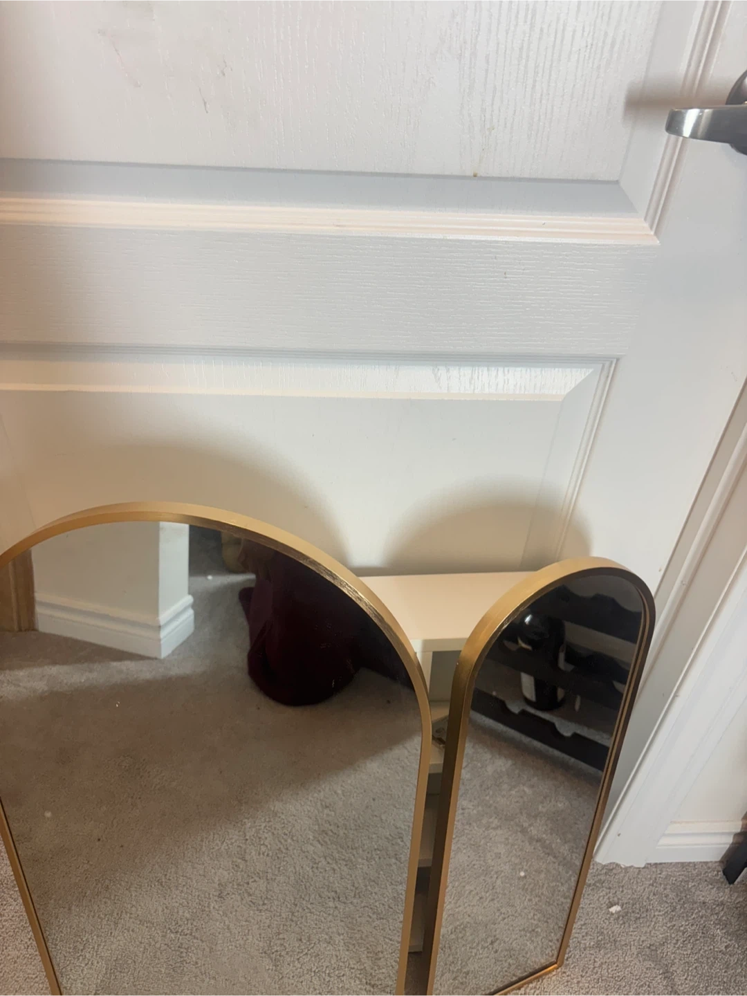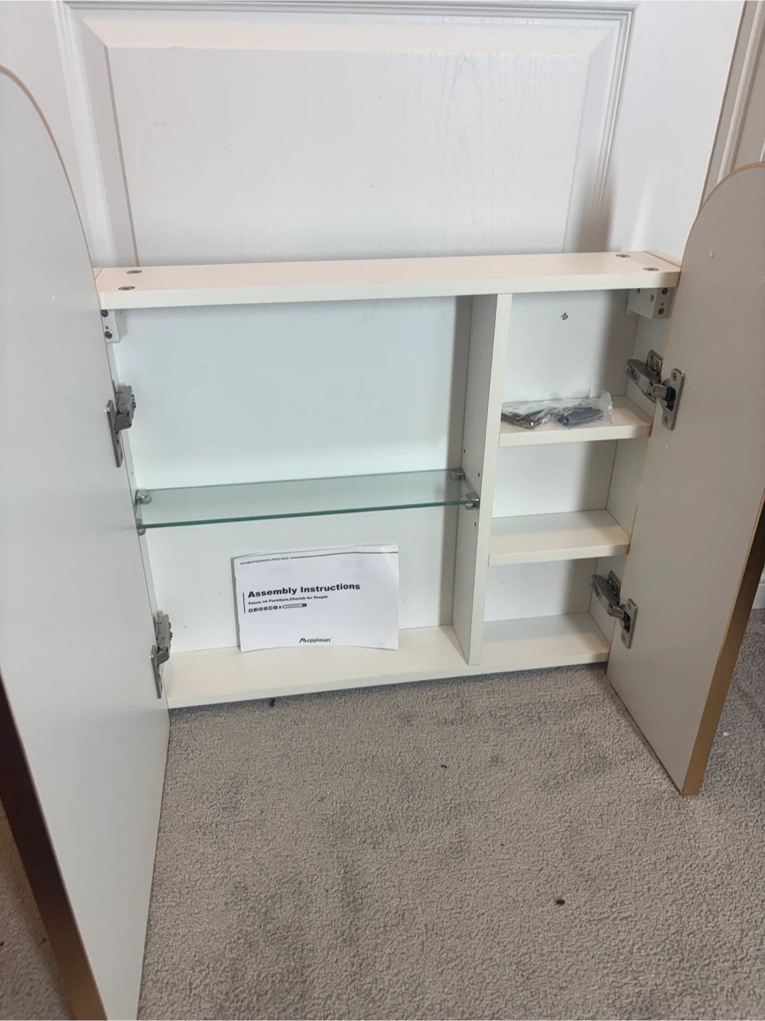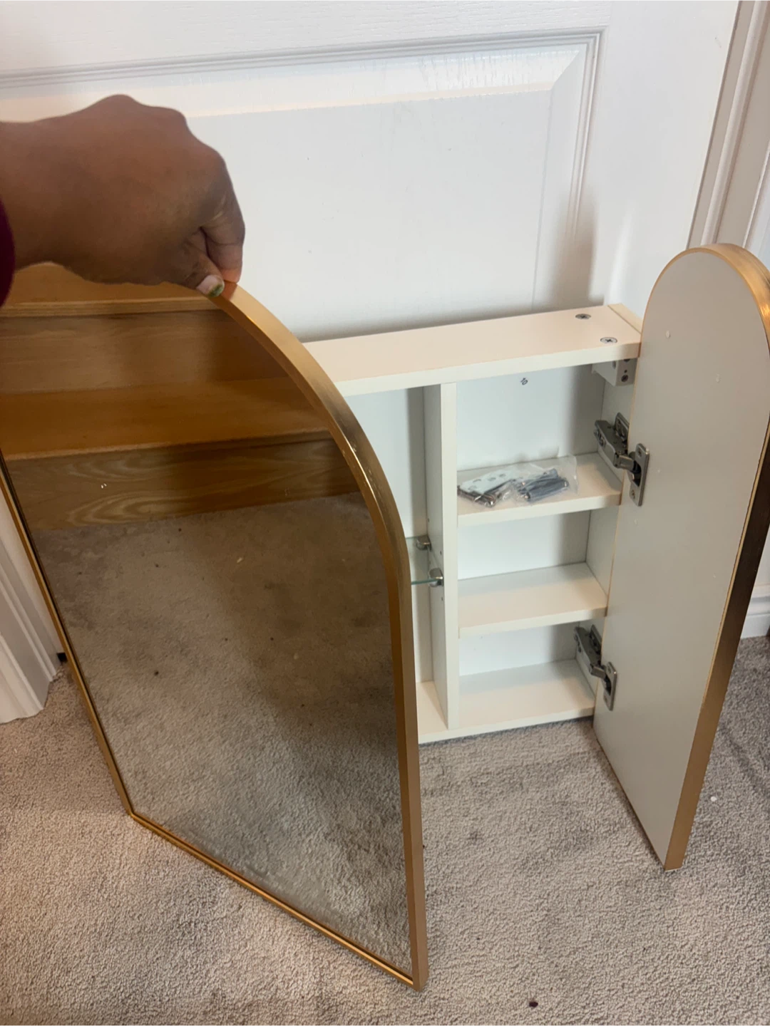 Selling an Ebern Designs arched medicine cabinet with a brushed brass finish! This stylish cabinet features a unique arched design and offers ample storage for your bathroom essentials.