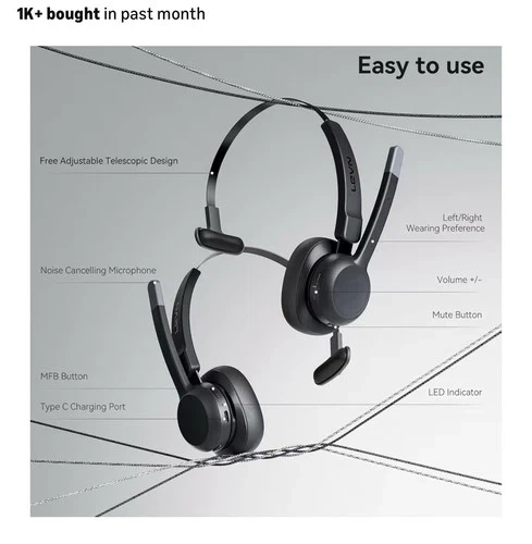 LEVN Bluetooth 5.2 Headset β Noise Cancelling Trucker Headset with Mic β Single-Ear Wireless. This professional Bluetooth headset is specially designed for drivers, workers on the go, office, long calls and noisy environments. Its 99% noise cancellation ENC technology ensures clear calls without interruptions, even on roads, warehouses or heavy traffic. Connect up to 2 devices at once, enjoy a stable connection and work all week on a single charge.