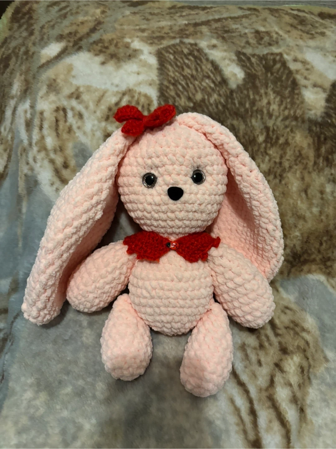 Looking to sell this adorable handmade crochet bunny! It's a soft, plush toy in a lovely pink colour. Perfect for a child's room or as a cute gift!