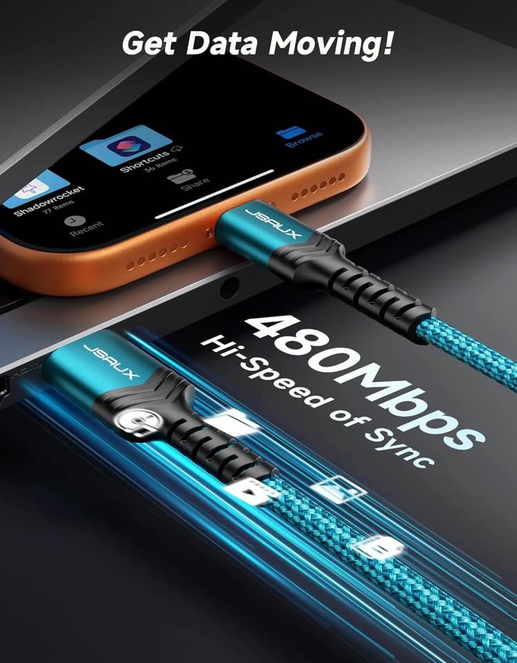 Supports up to 3.1A fast charge and 480Mbps transfer speed for efficient charging and quick file transfers.