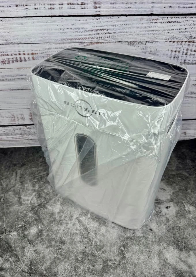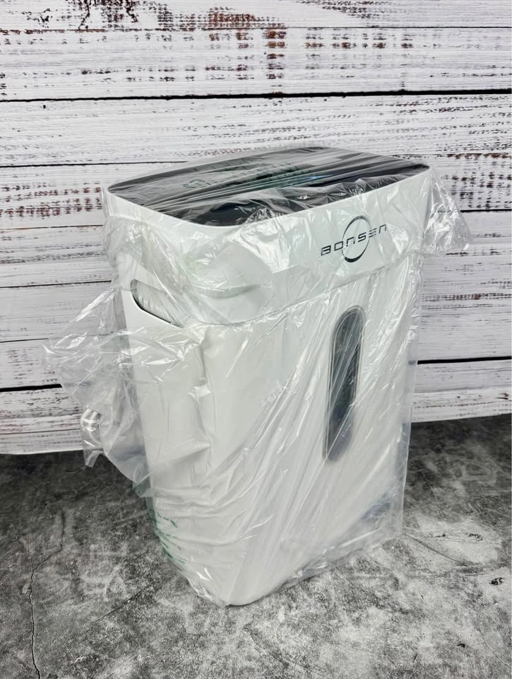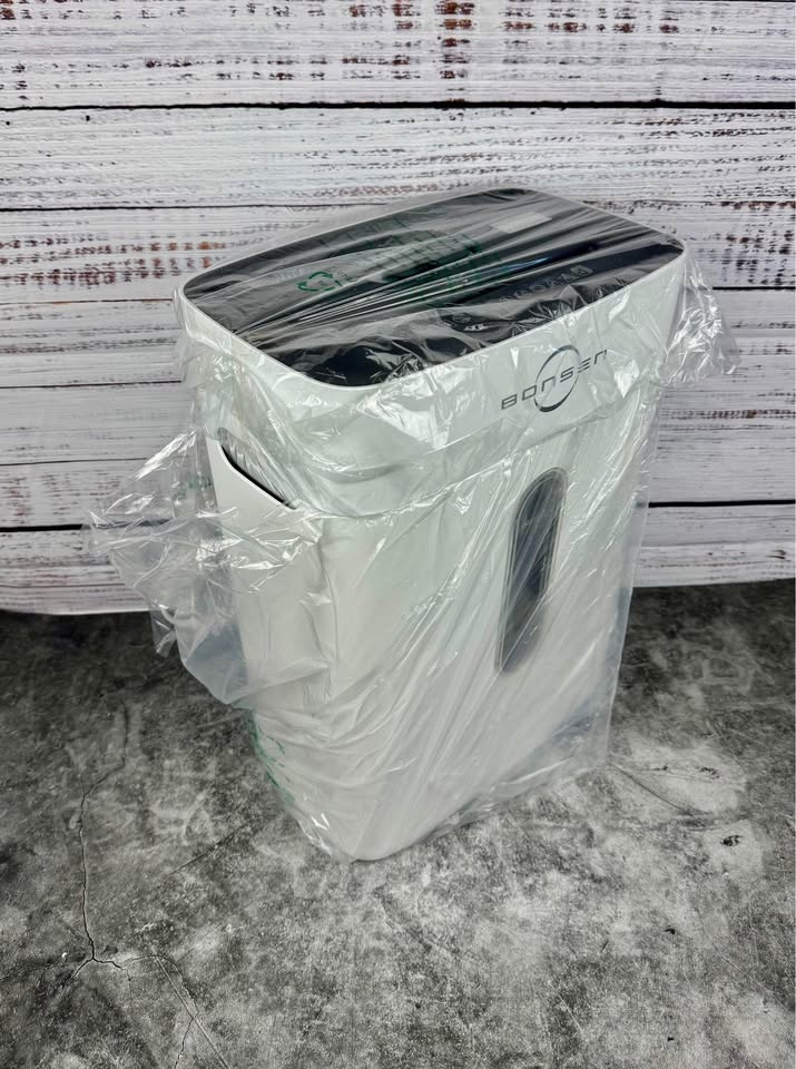 4-gal bin: Holds roughly 210 sheets; clear window to check fill level.