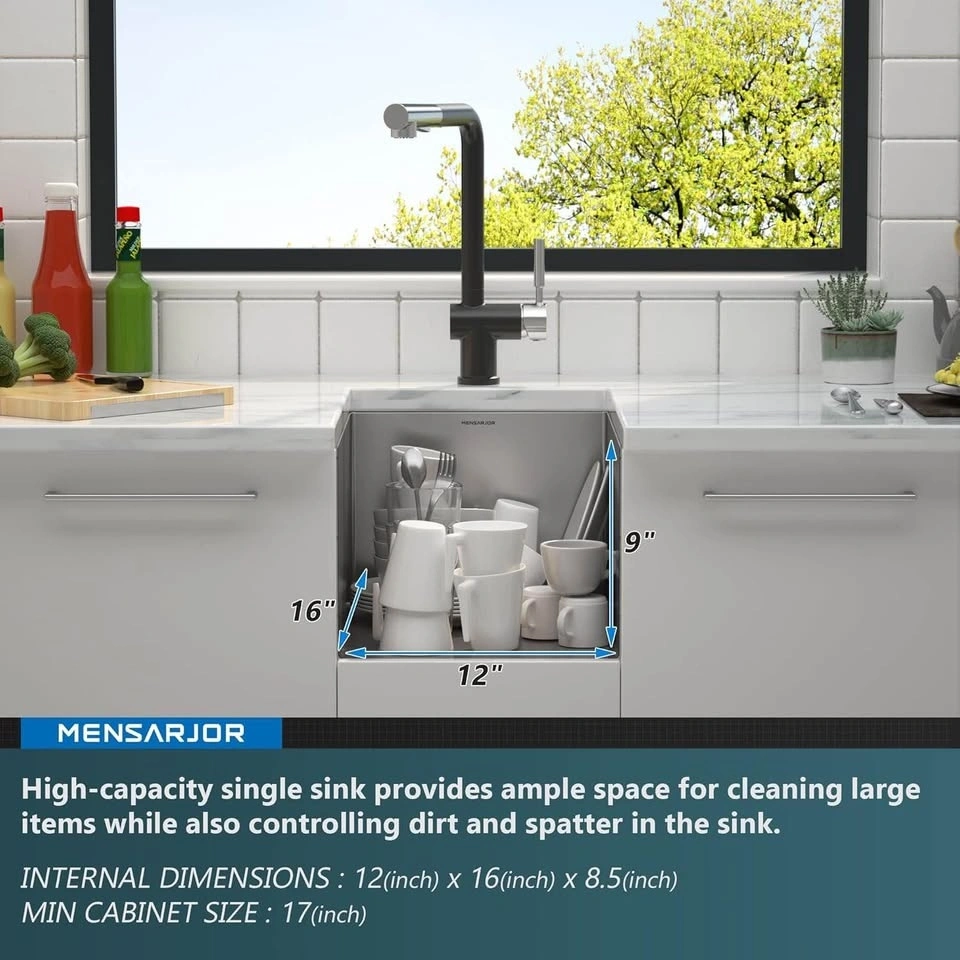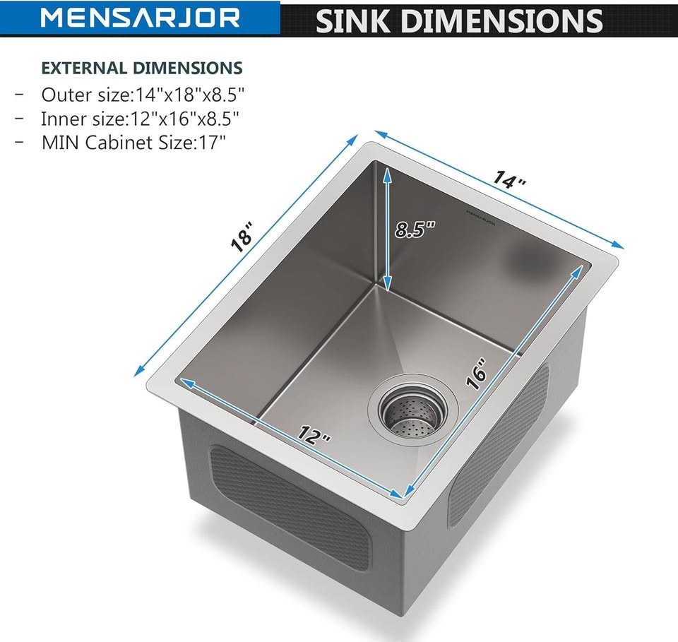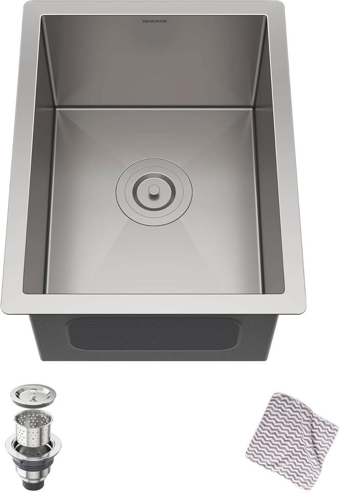 Compact undermount design fits tight spots like wet bars, RV kitchens, laundry rooms, and small prep areas. Made with premium 304 stainless steel that resists rust, stains, and everyday wear. Built with rubber noise pads and protective undercoating to reduce clanging and splashing. Brushed stainless finish with rounded corners for easy cleaning and low maintenance. Single bowl layout works well for bar setups, utility rooms, tiny homes, and compact countertops. Pick up Only. Southwest Edmonton (Windermere Area)