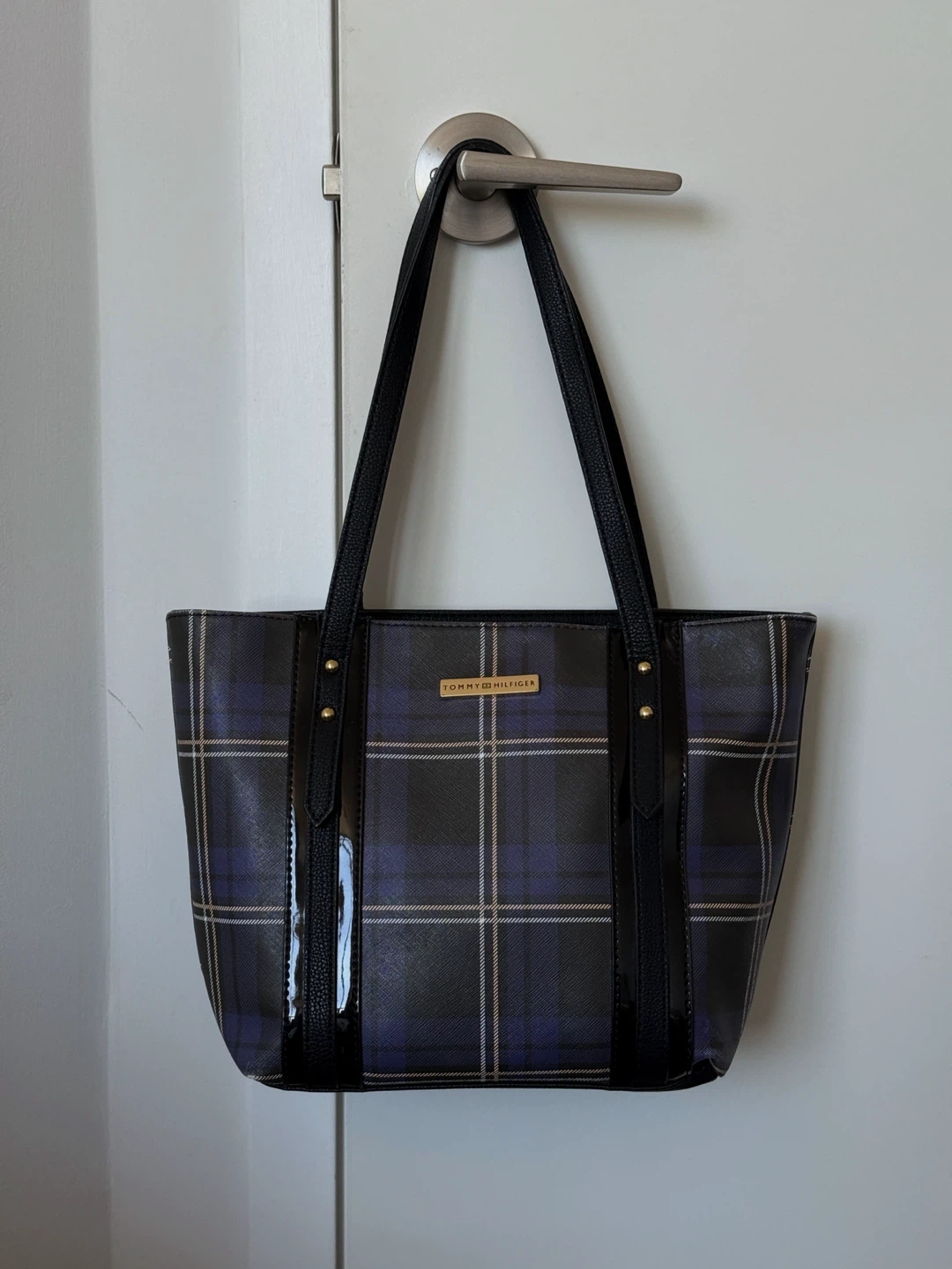 Tommy Hilfiger tote bag with a plaid pattern! It's in great condition and perfect for everyday use. The interior has a red zipper pocket, adding a pop of colour.