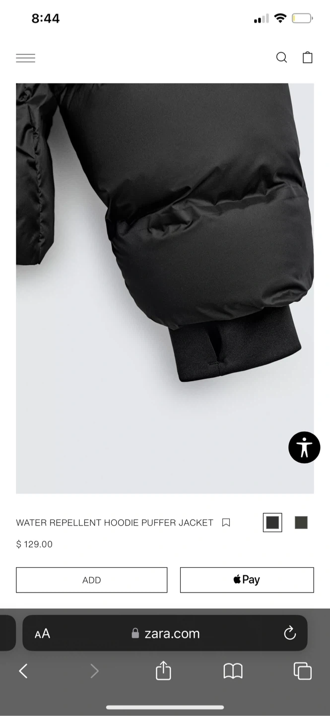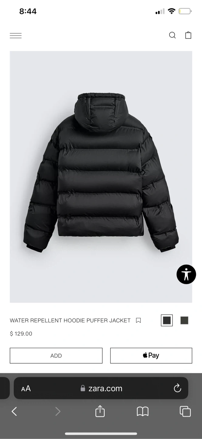 Selling a Zara puffer jacket in black. It's in perfect condition and great for the colder weather! The jacket is a size S but also fits medium. Originally bought for $129.00