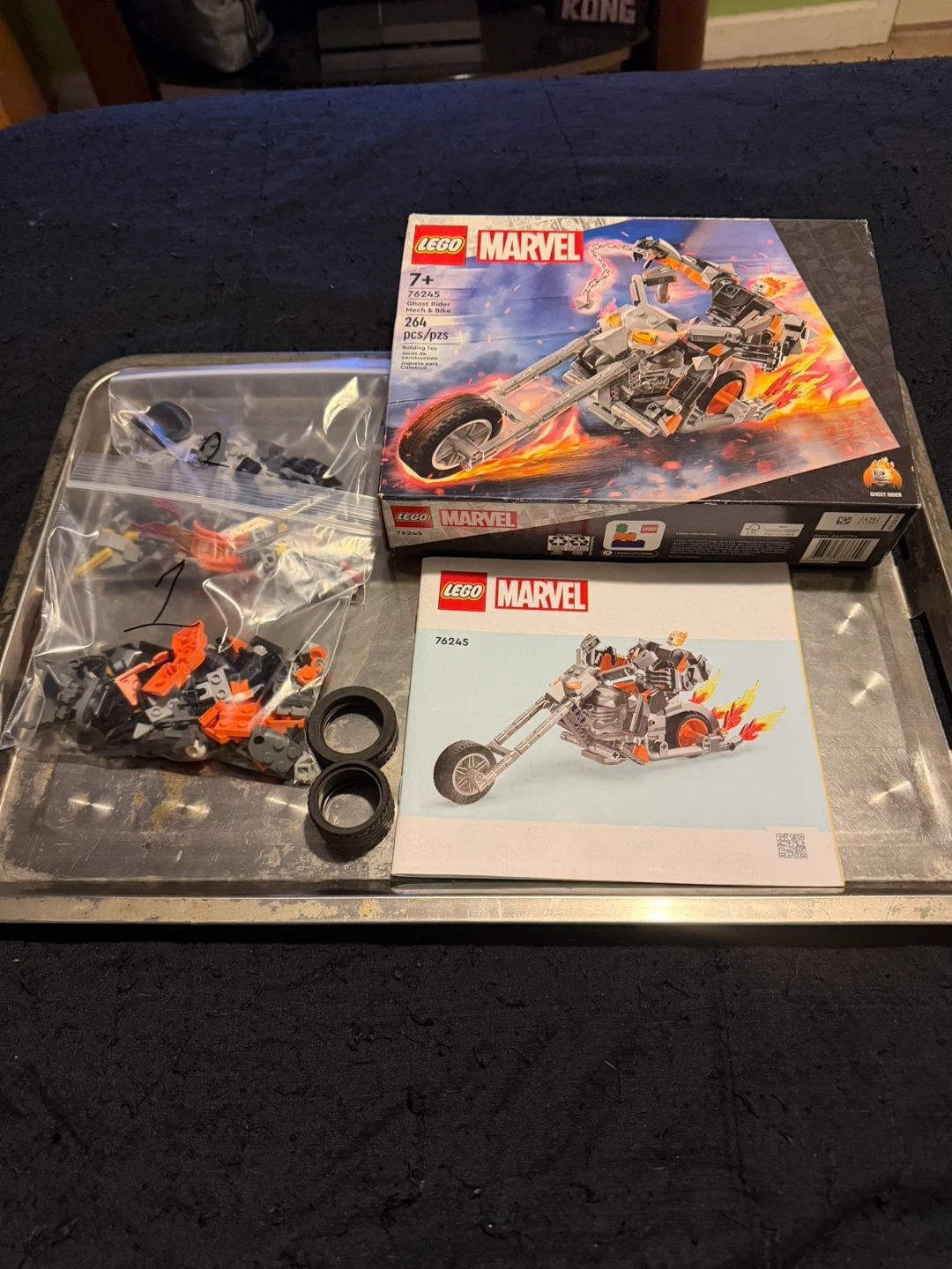 Selling a LEGO Marvel Ghost Rider Mech & Bike set (76245)! This set is for ages 7+ and includes 264 pieces. Comes with the box and instructions! All pieces have been re-bagged & the set is ready to go! #cleanout