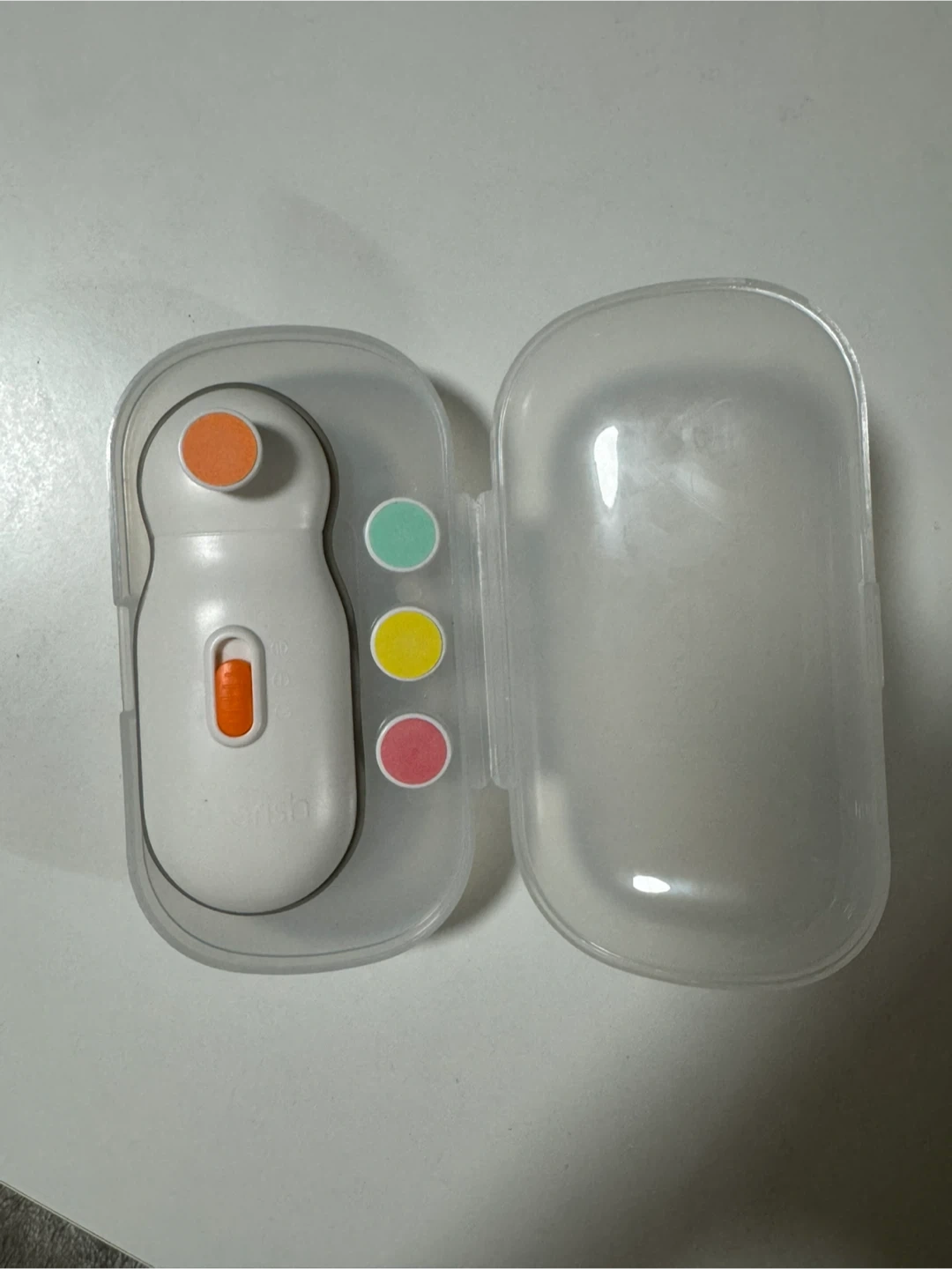 Selling a Cherish baby nail trimmer that comes with its case! It has different coloured cushioned pads for various stages of baby's nail growth. Perfect for keeping your little one's nails neat and tidy without any fuss