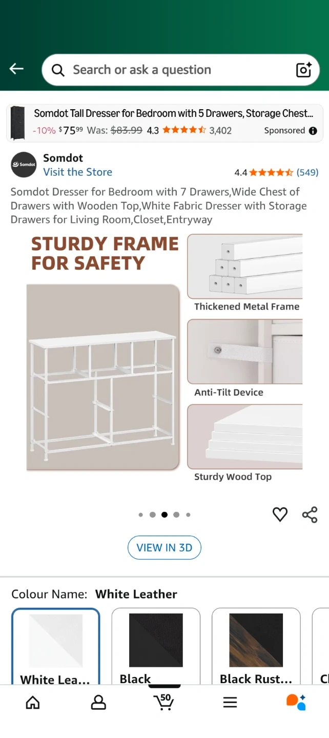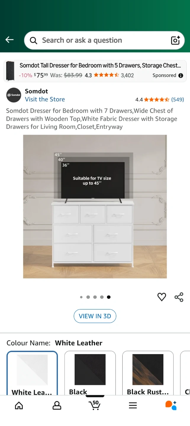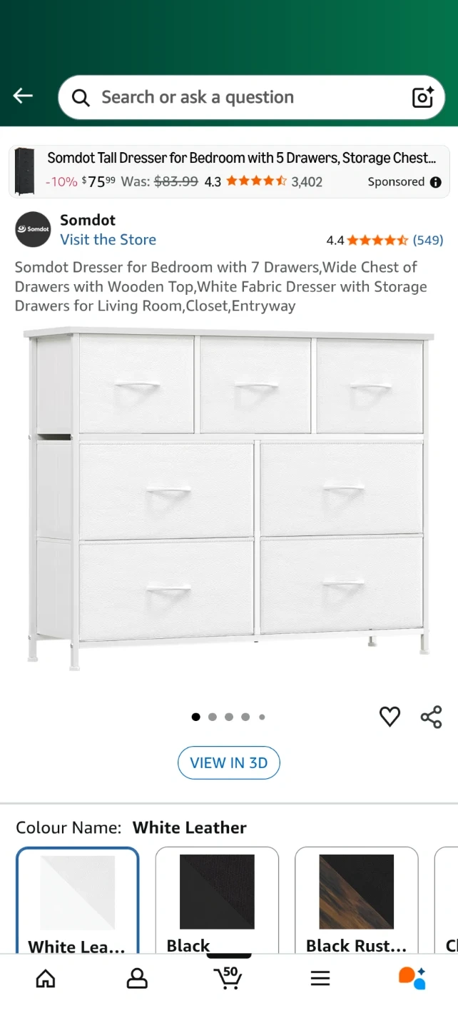This Somdot tall dresser features 7 drawers, perfect for bedroom, closet, or entryway storage. The colour is a white leather finish.