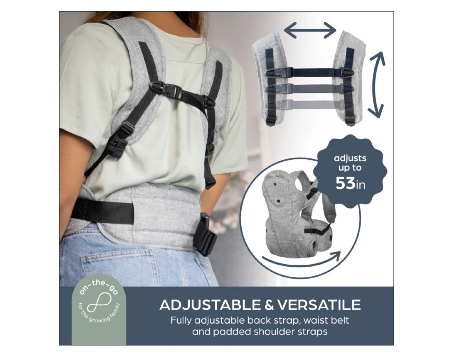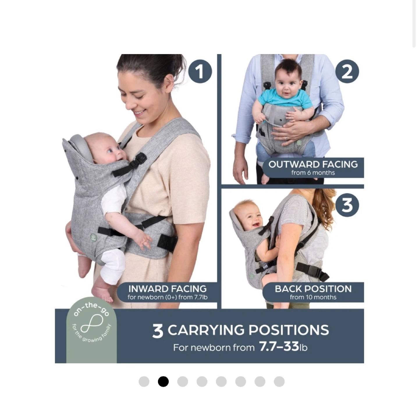 Removable cushion for newborns. Can be worn 3ways.