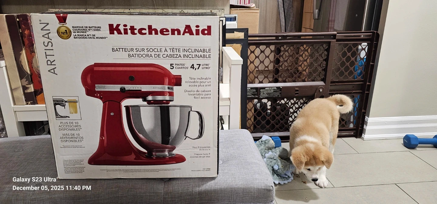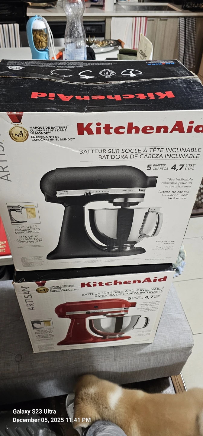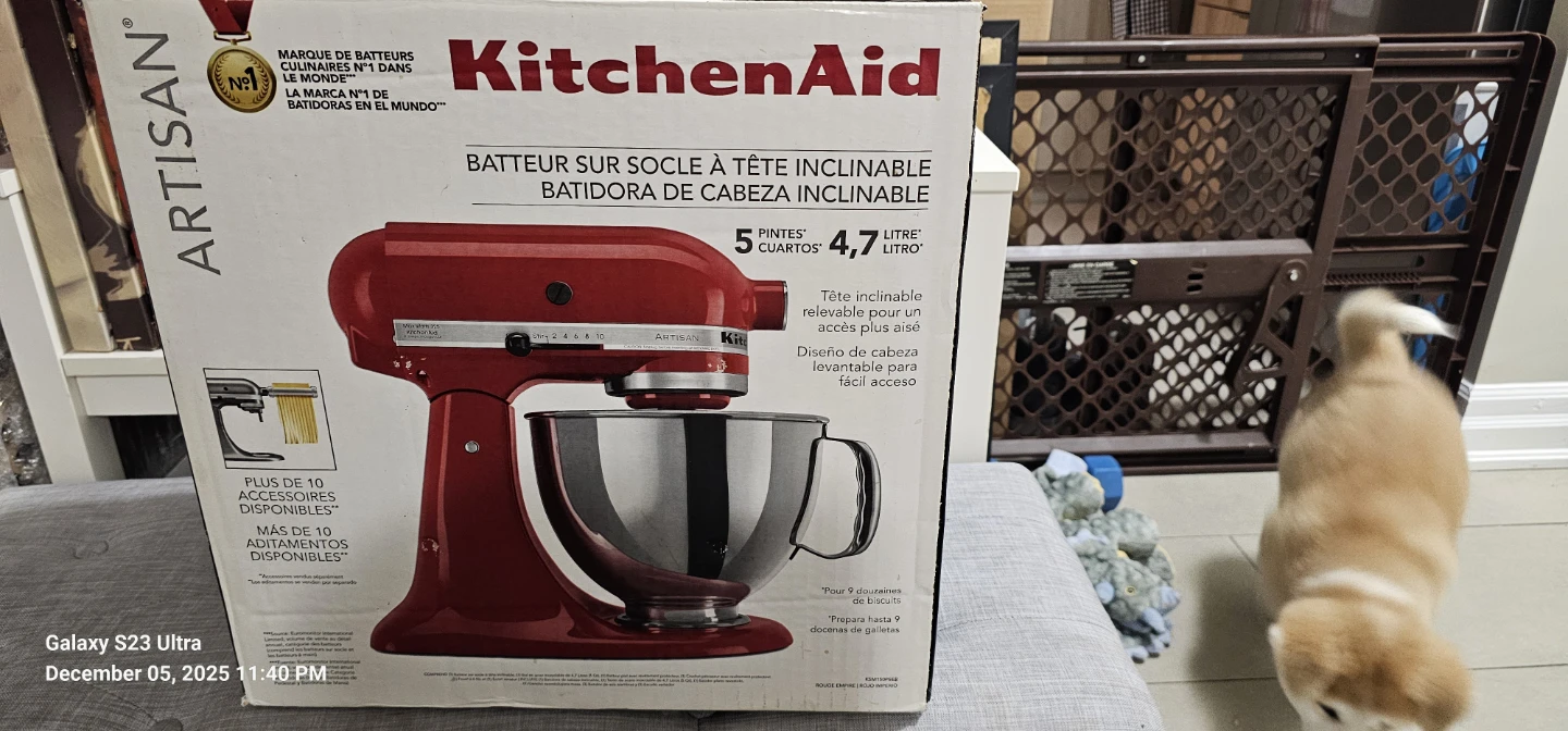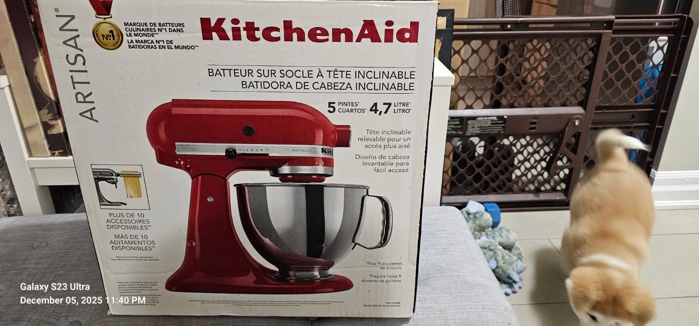 Selling a brand new KitchenAid Artisan stand mixer, still in its original box! This is the 5-quart model, perfect for all your baking needs. Comes with all the original components and accessories. A great addition to any kitchen!