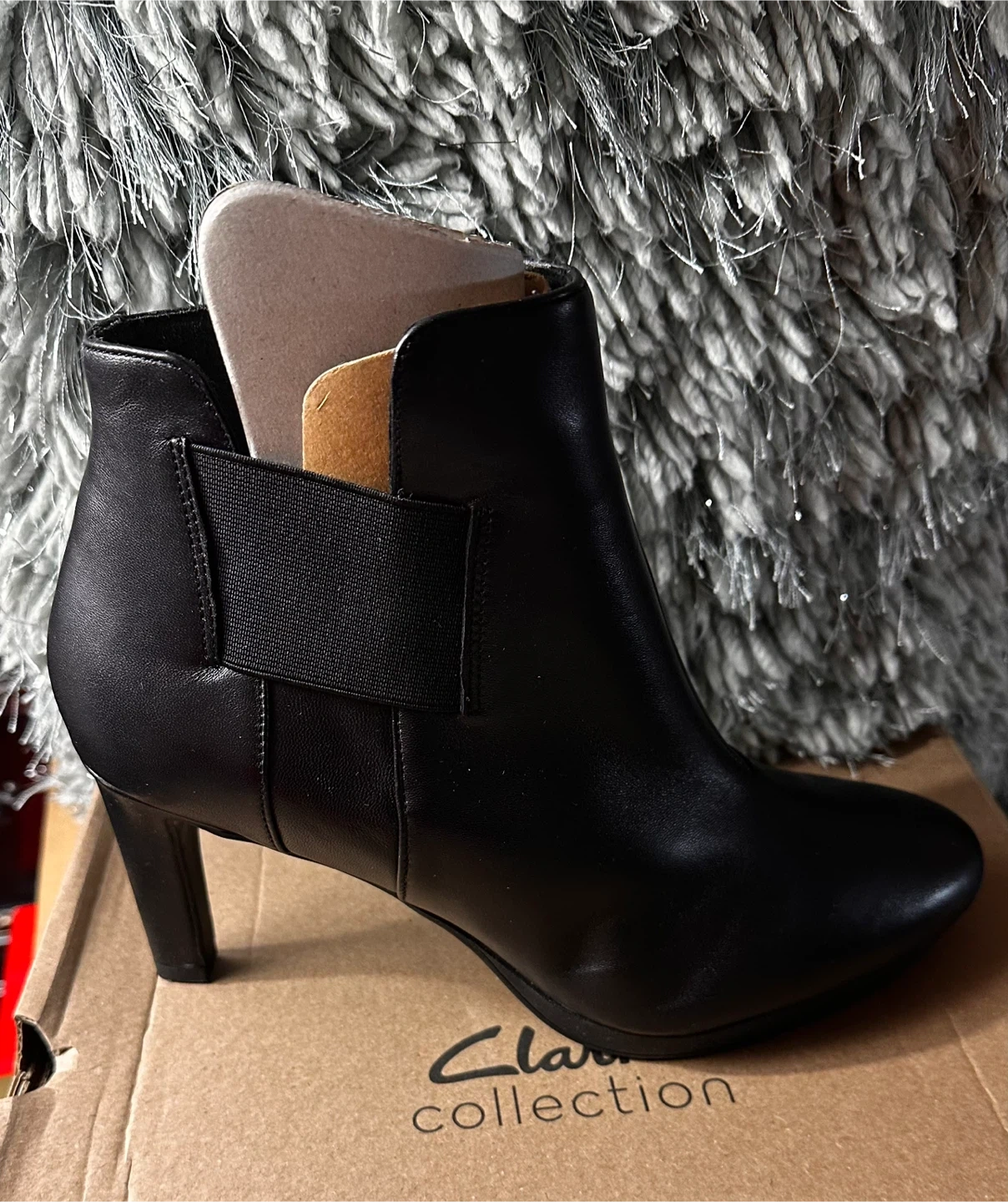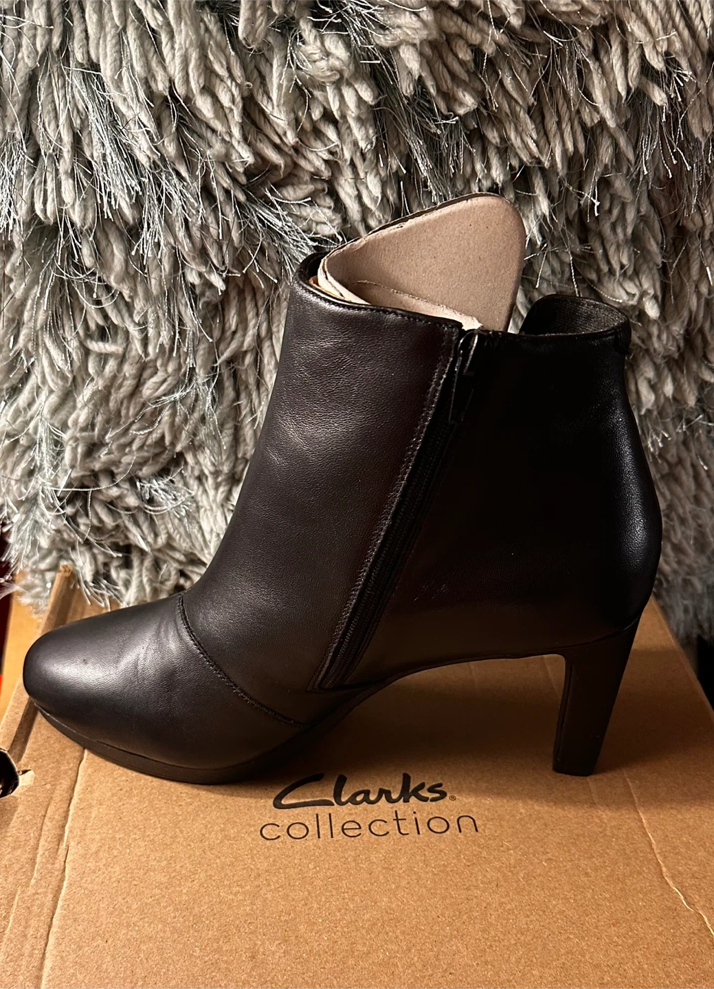 Step out in style with these elegant Clarks ankle boots, size 10. Featuring a sleek black design and a comfortable heel, these boots are brand new , and are ready to elevate your wardrobe.