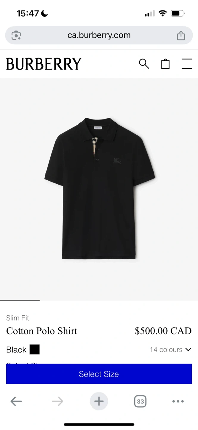 Authentic Burberry Black Cotton Polo Shirt, Slim Fit