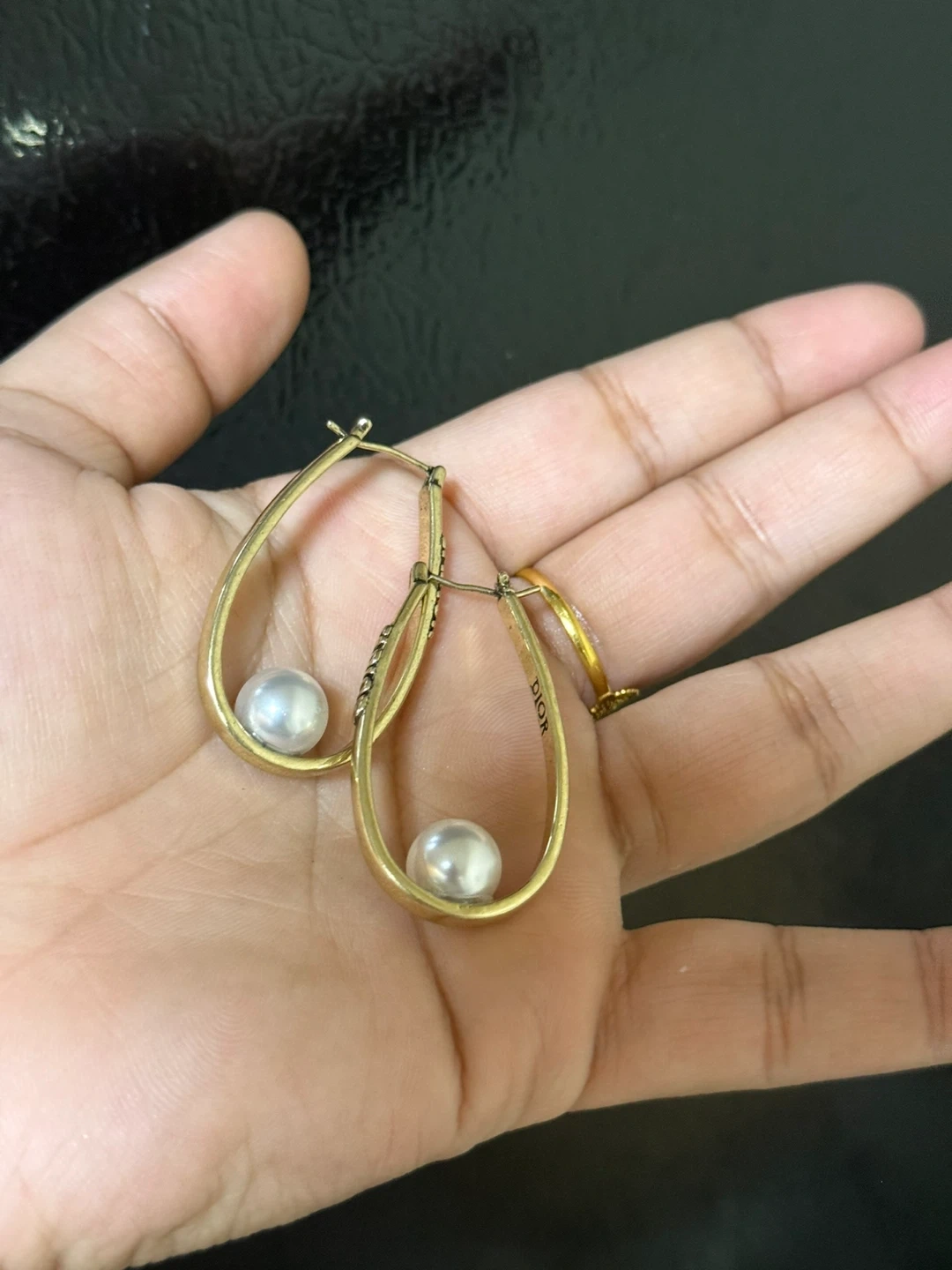 Elegant gold and pearl hoop earrings