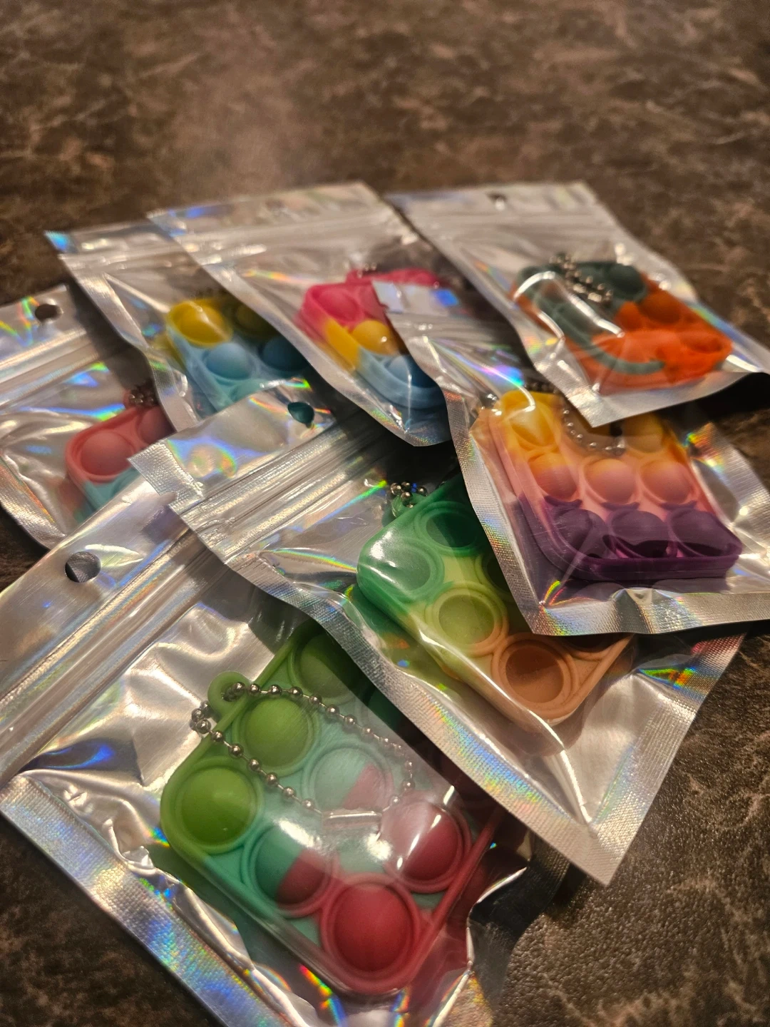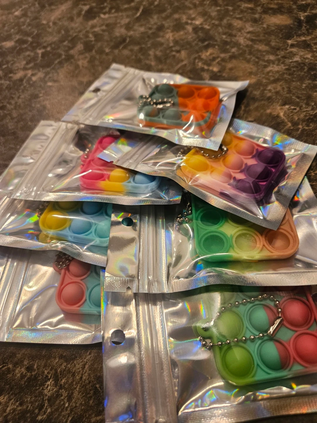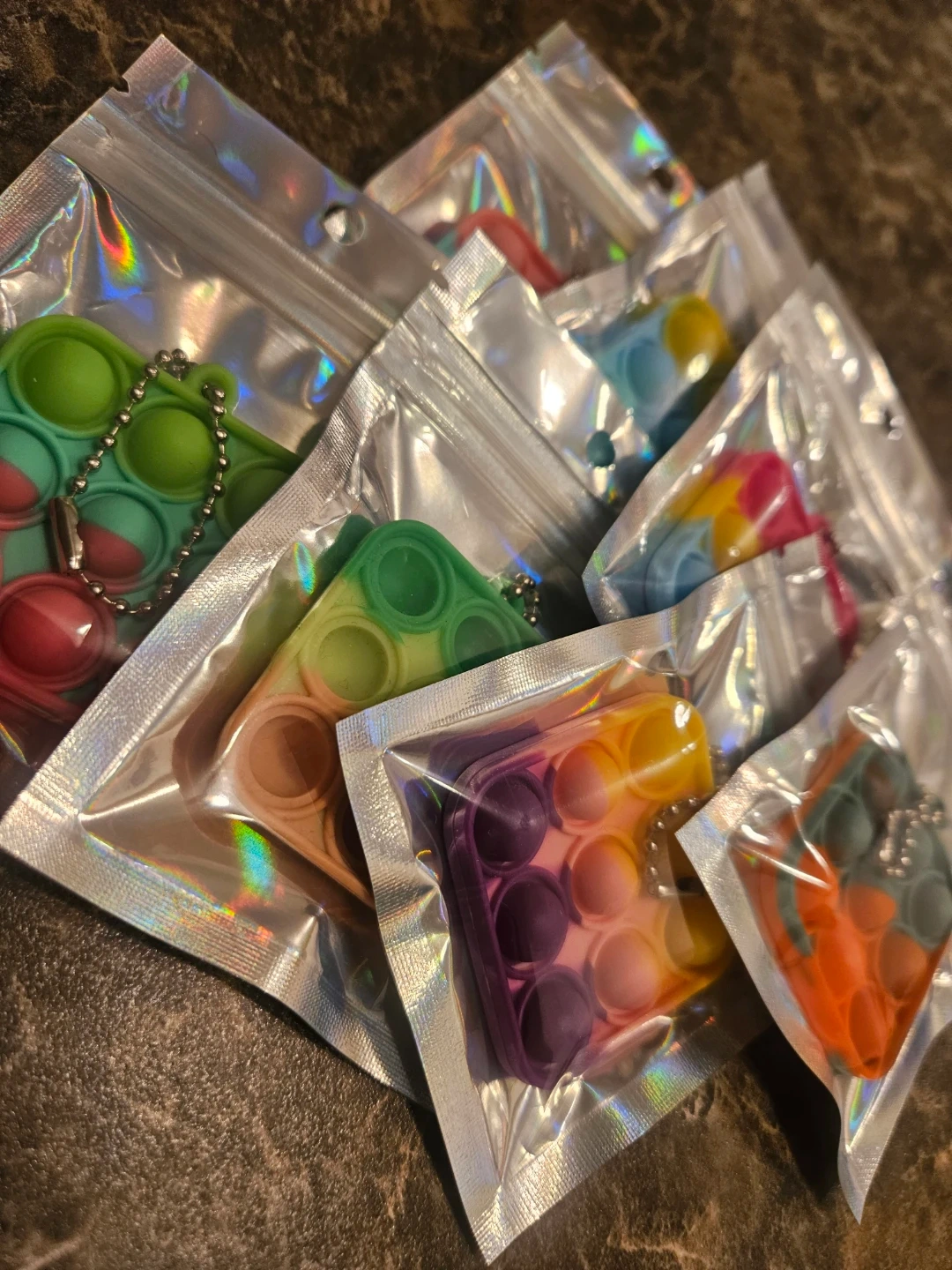 I'm selling new mini Pop It keychains! They're great for stress relief and keeping your hands busy. Lots of fun colours available!