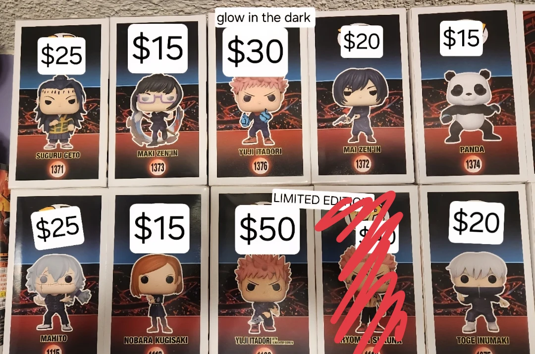 All prices in photo! Can bundle up funkos for discounts, looking to get rid of for space!! CAN ALSO BUNDLE/DISCOUNT WITH OTHER ITEMS IN MY LISTINGS. I have more anime please feel free to look and screenshot an item =) good for Christmas gifts