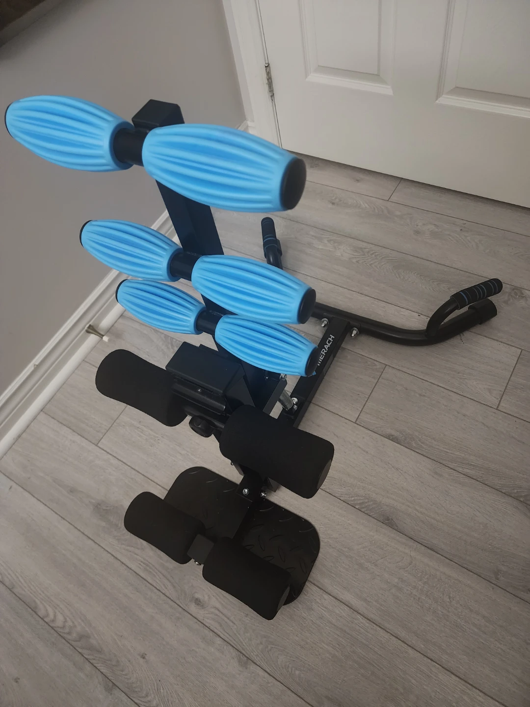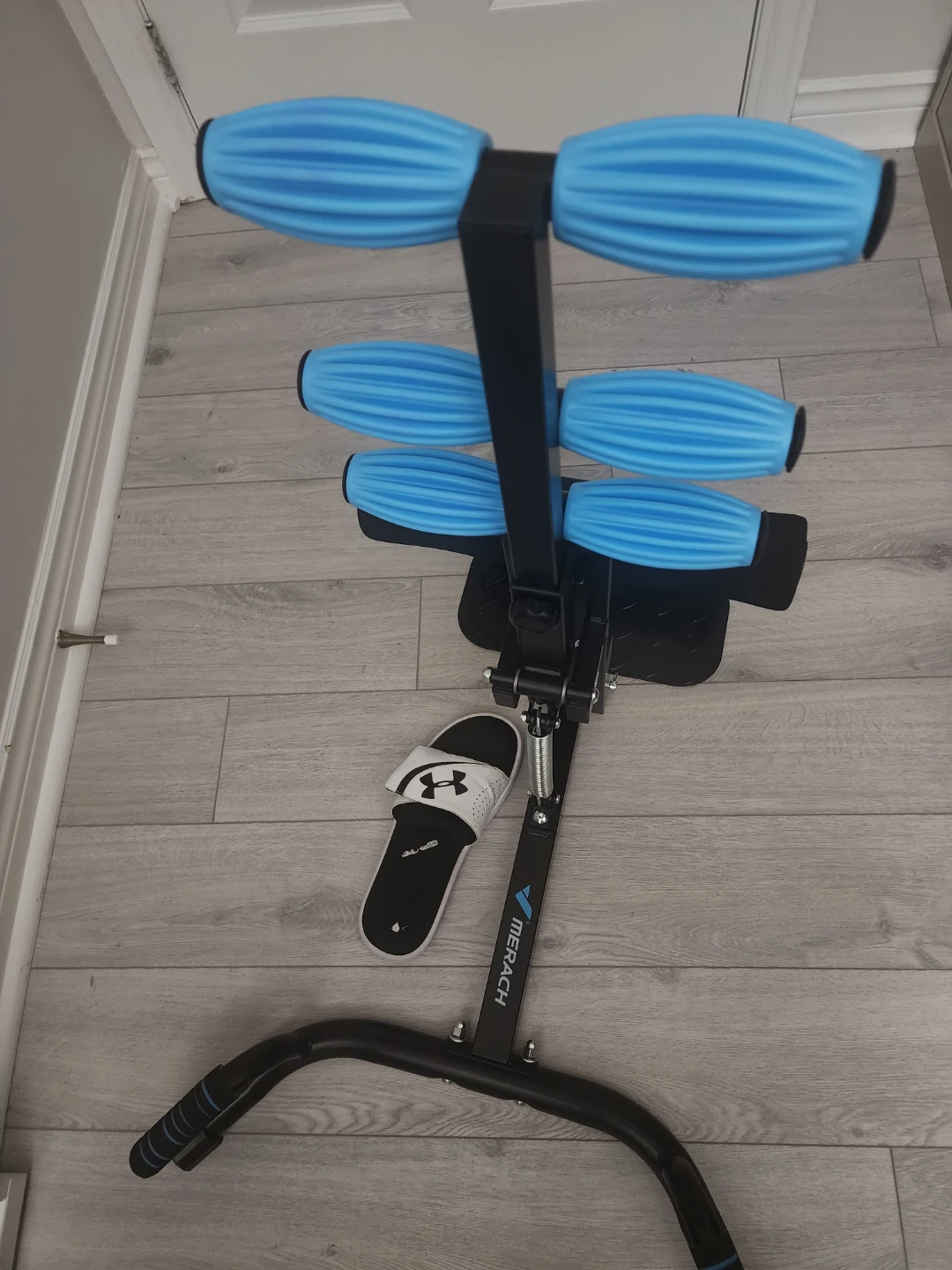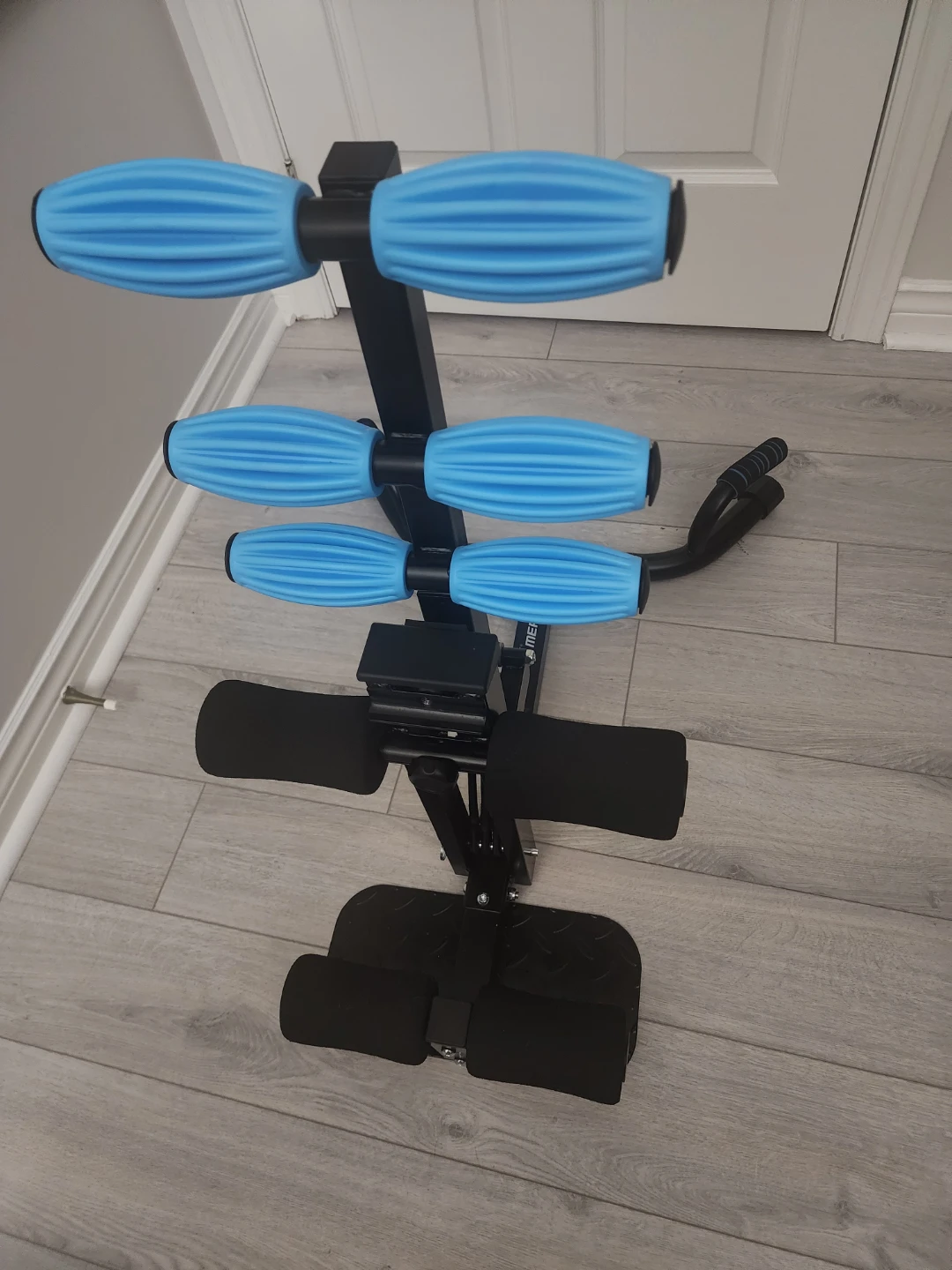 Merach core exercise station helps with form and consistency. Sturdy without being overly heavy. Can be folded to take up little space. Like new, not scratched or worn.