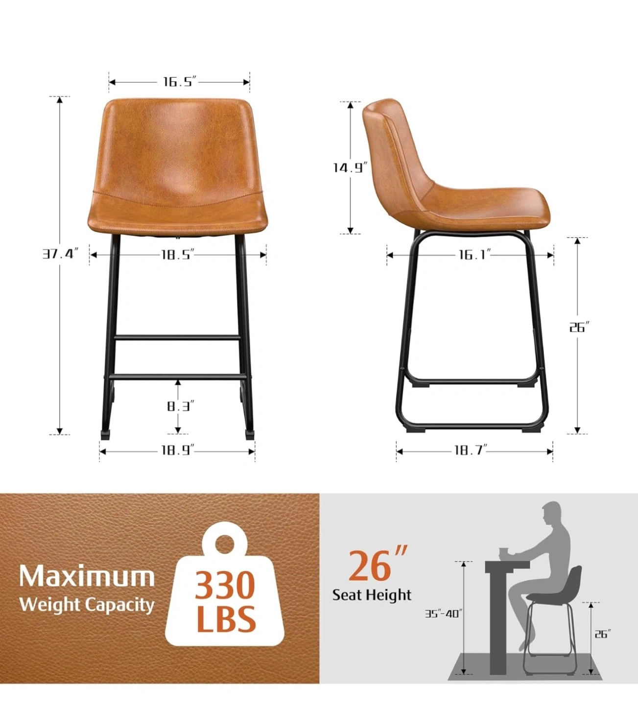 Selling a comfortable tan faux leather bar stool. It has a 26" seat height, perfect for kitchen islands or bars. The stool features an ergonomic design with a real comfort cushion and easy-care leather. It also has relaxing pedals and a non-slip protector for added stability and convenience