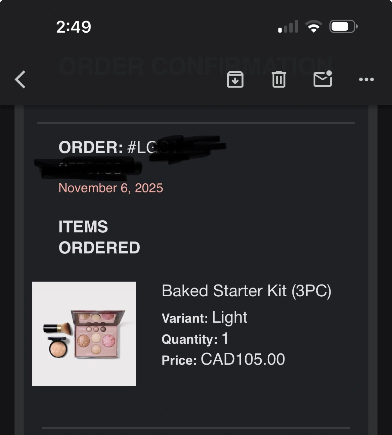- Baked Starter Kit (has a bronzer, blush, eyeshadow and highlighter)