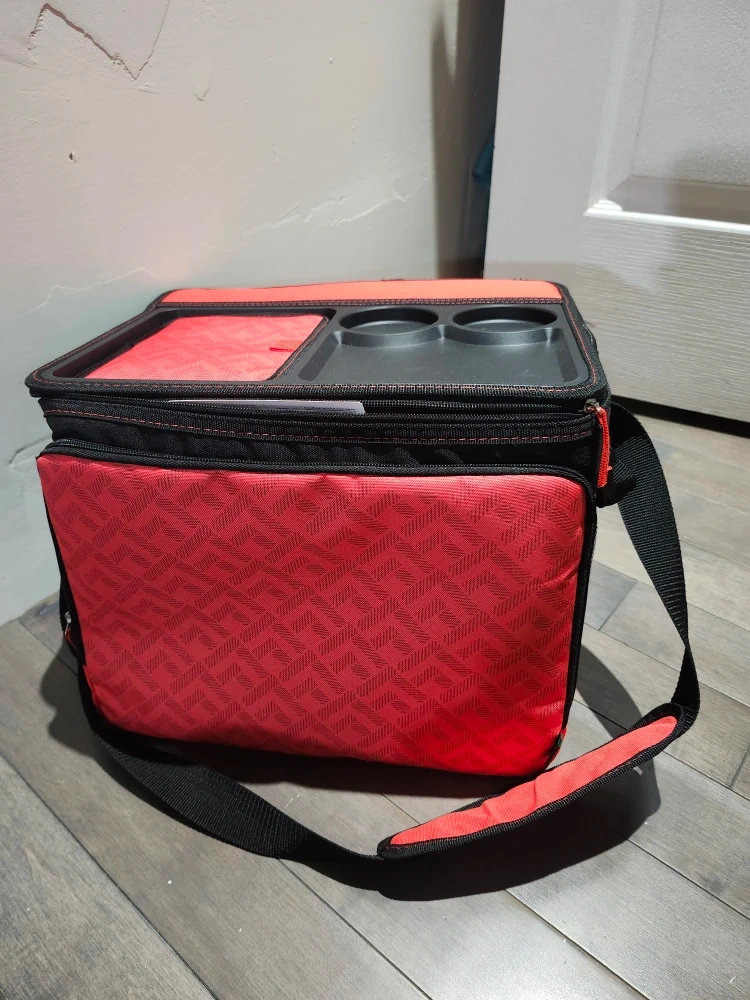 Keep your food and drinks cool with this Vida by Paderno large insulated lunch bag! It's perfect for picnics, road trips, or bringing lunch to work. It has a 11L capacity and is designed to keep your items cool. It features a tray on top with cupholders!never use